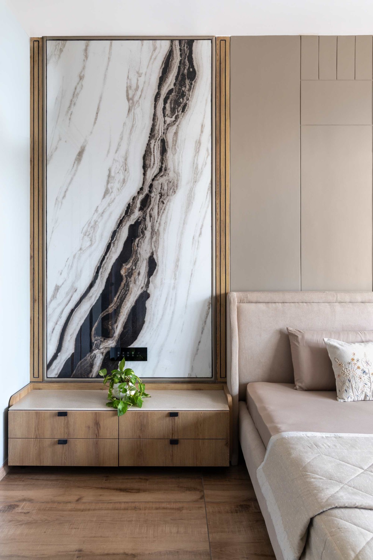 Each bedroom has different craft story to tell, from tile clads on wall with wood panelling that enhances spatial ambience and character being a focal point.