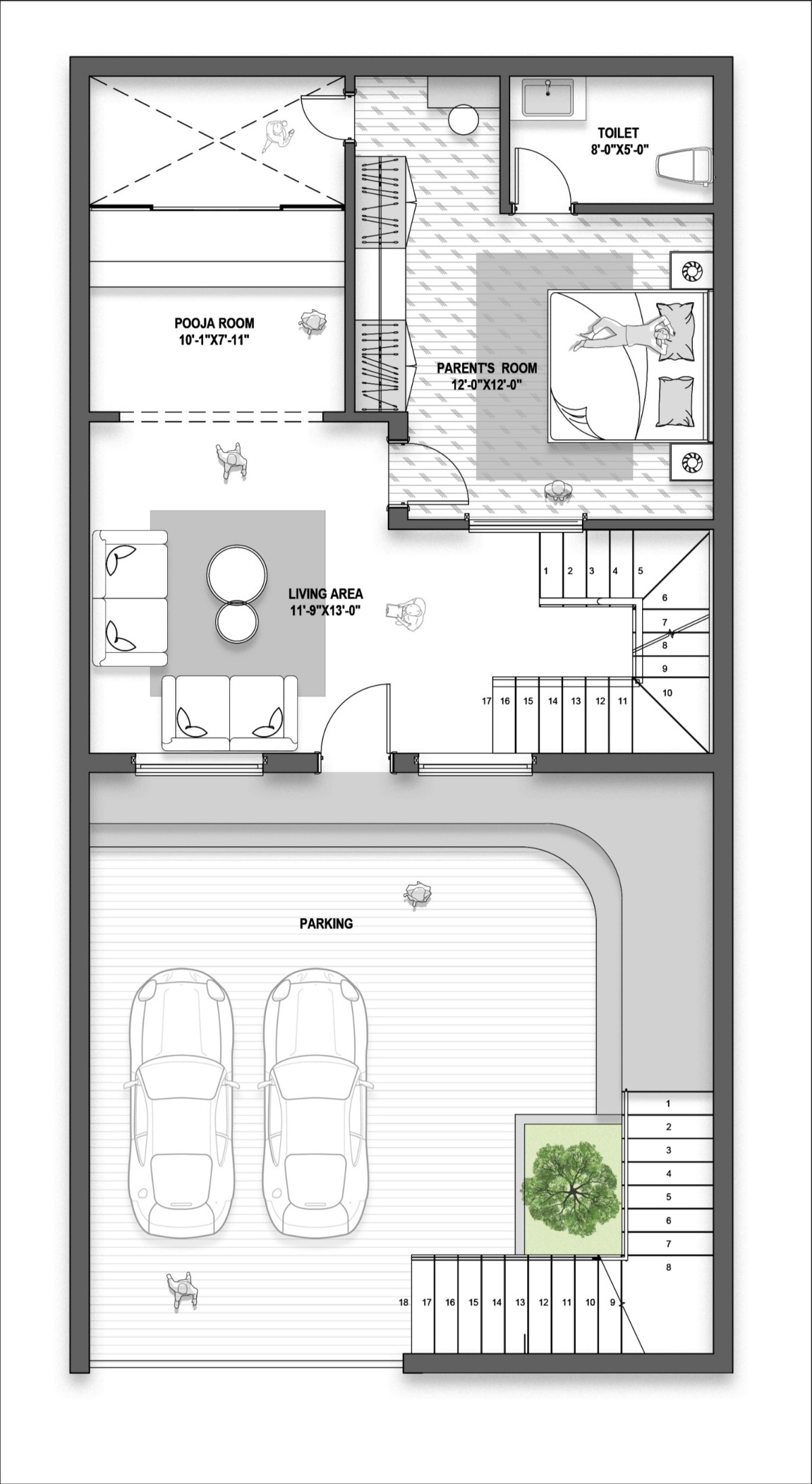 Ground Floor Plan of Abode of Peace by Aayadi Architects LLP