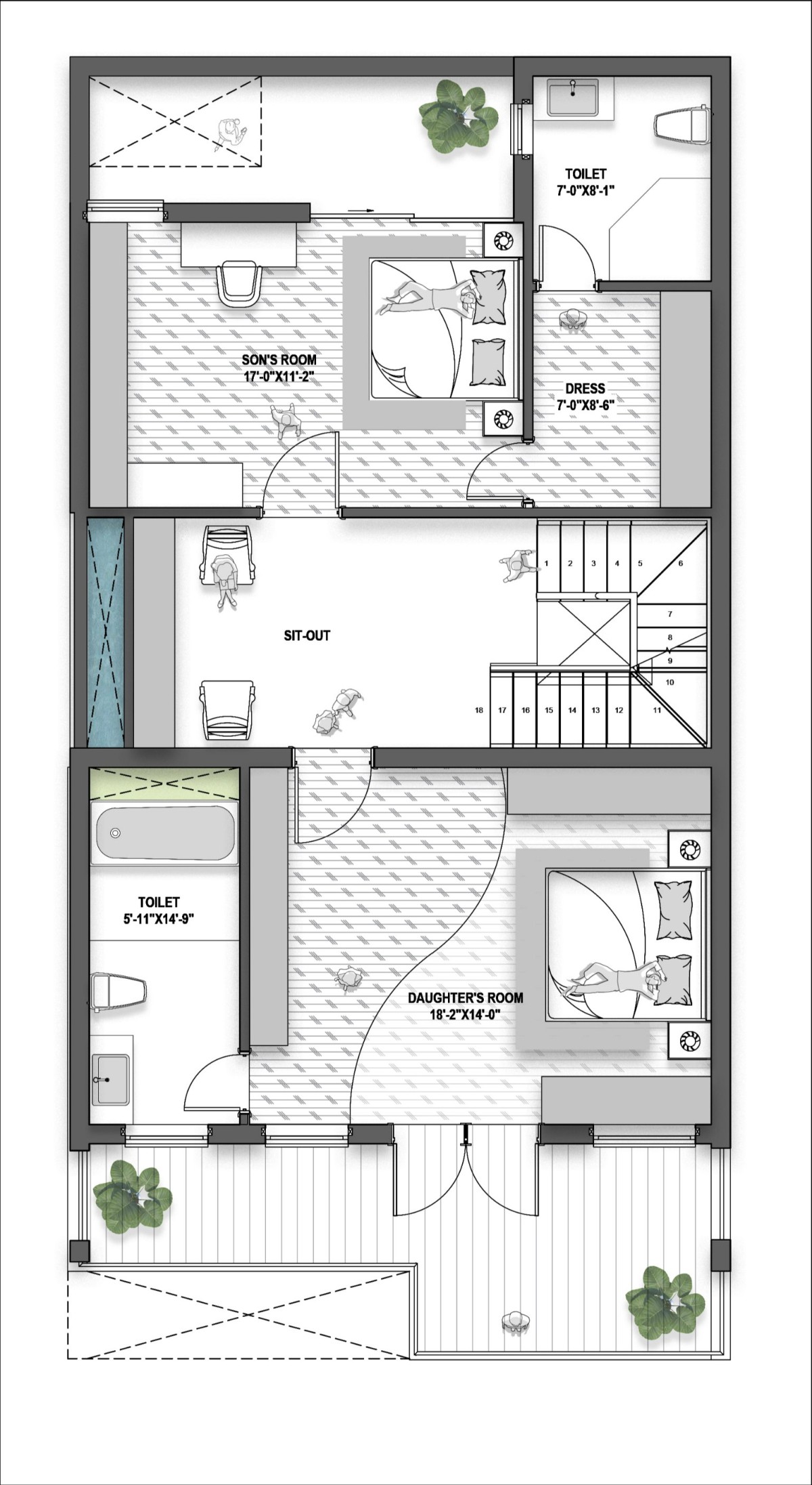 Second Floor Plan of Abode of Peace by Aayadi Architects LLP