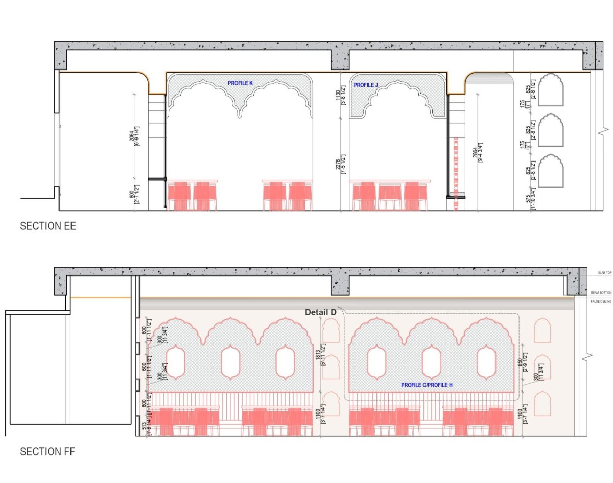 Section EE & FF of Amritsar Haveli Restaurant by Studio Dimensions