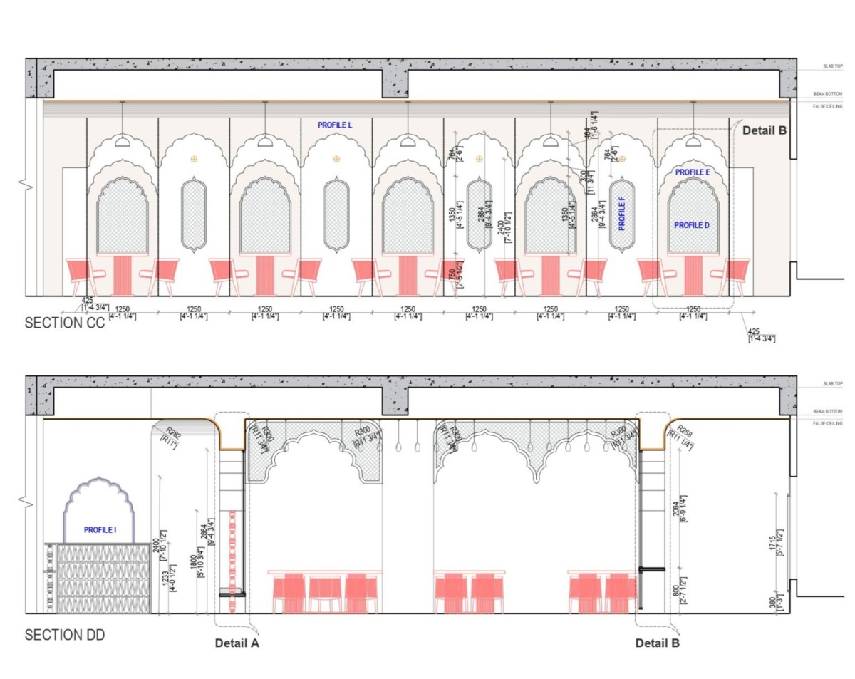 Section CC & DD of Amritsar Haveli Restaurant by Studio Dimensions
