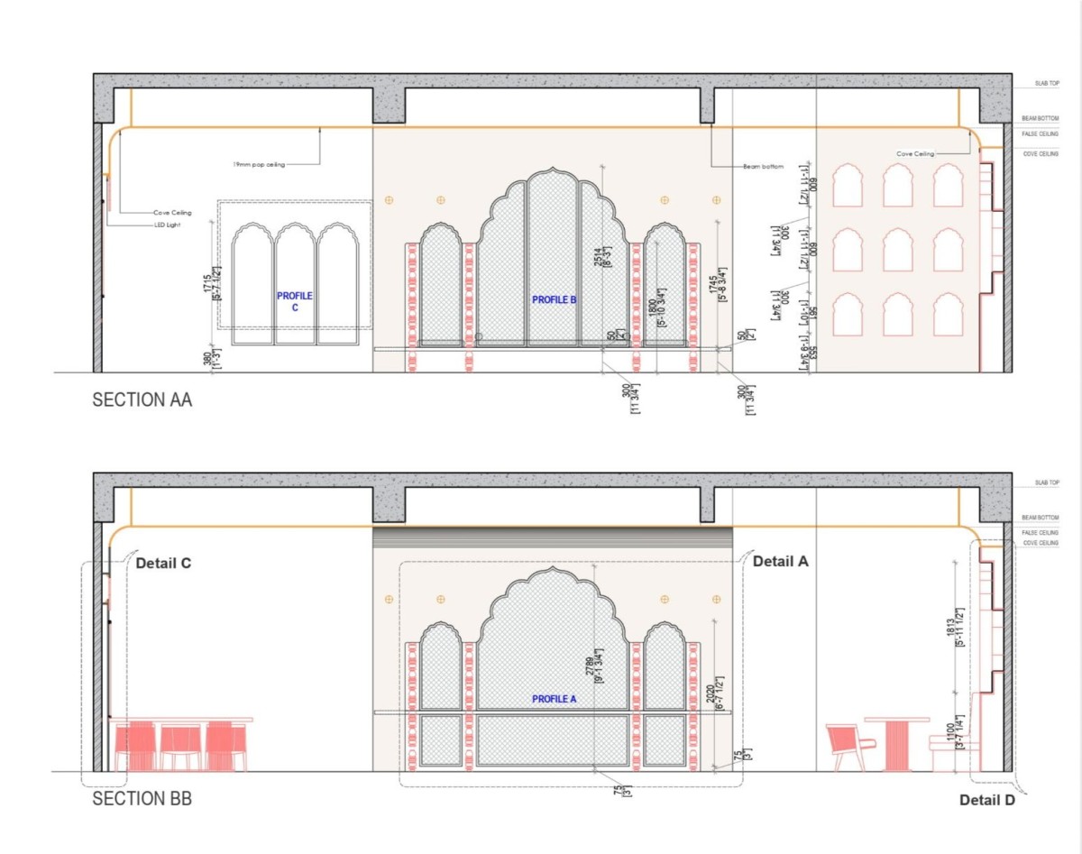 Section AA & BB of Amritsar Haveli Restaurant by Studio Dimensions
