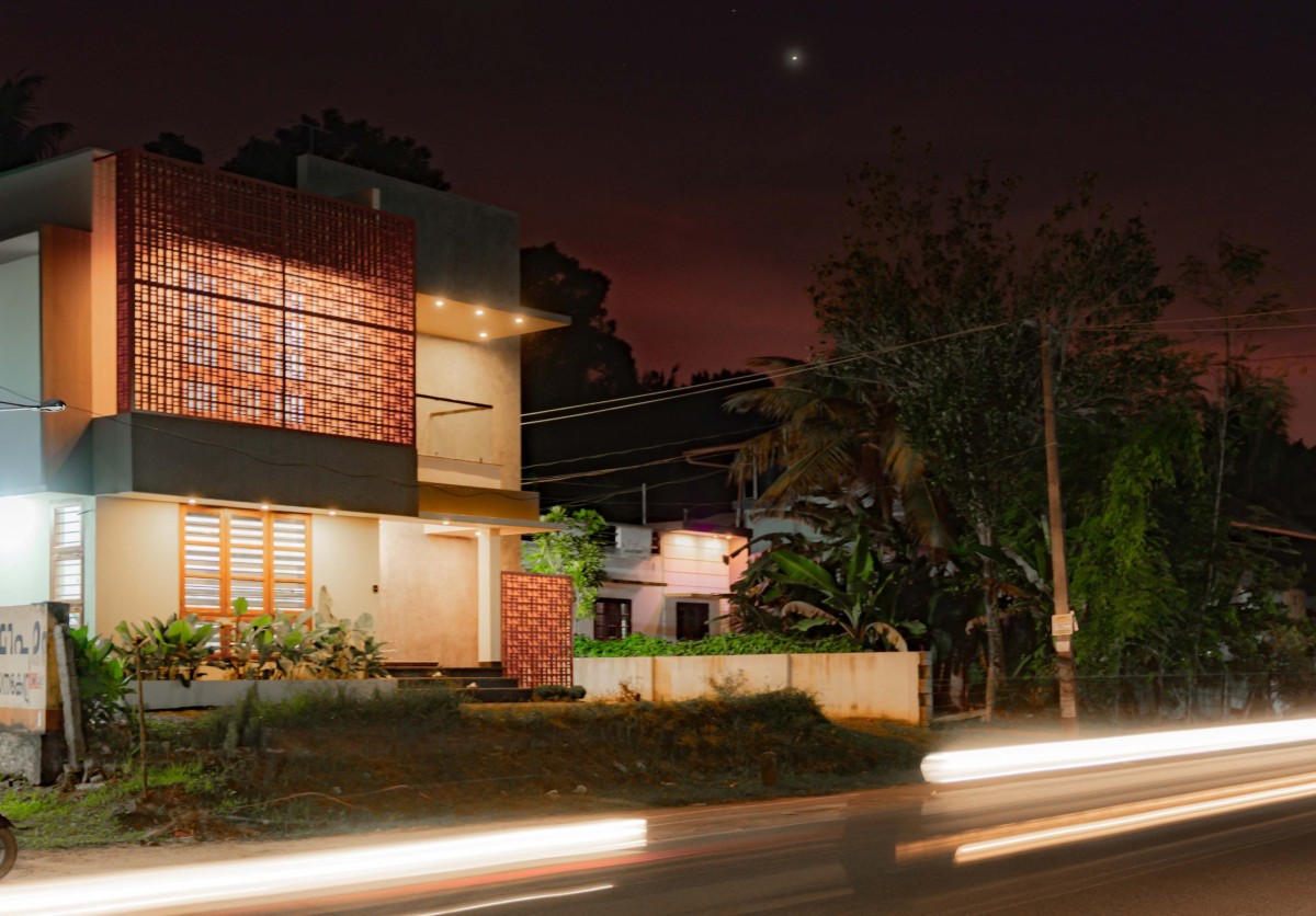 Ancy & Ansu Residence, located in Kattanam, Alappuzha, is a thoughtfully designed family home completed in 2024. Spanning a built-up area of 1,500 sq. ft. on a compact 7-cent plot, the residence balances functionality with aesthetic warmth while remaining mindful of budget. The design introduces subtle yet distinctive elements, where soft hues create a soothing ambiance and intricately crafted jalli patterns lend depth, charm, and character to the spaces. Every corner of the home reflects a sense of intimacy and comfort, making it a personalized retreat for the family.