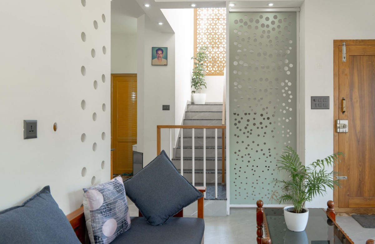 Living to Staircase view of Ancy & Ansu Residence by Stria Architects