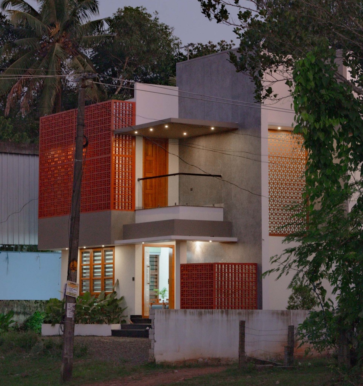 Dusk light exterior view of Ancy & Ansu Residence by Stria Architects