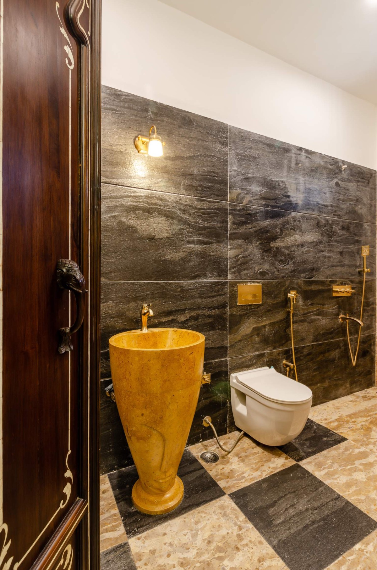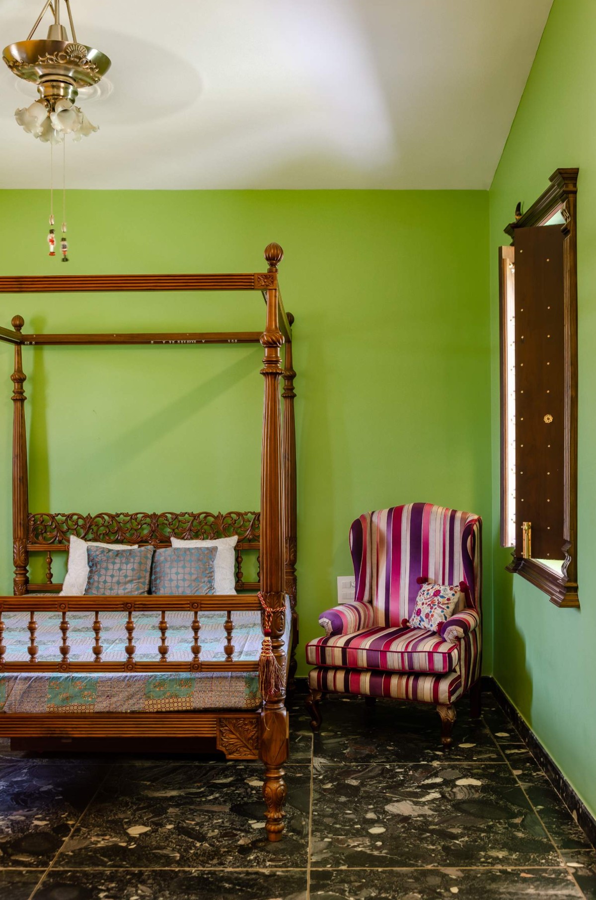 The outhouse is comfortably used by the Senior Mr. Khamesra regularly along with his friends as his own connected yet distinct space. Inspite of traditional facelift of outhouse, all facilities are precisely modern and fulfil all modern-day needs. It is named bespoke outhouse because it is very close to client's heart, facilitated with carved, handpicked, furniture, artwork, furnishings, with construction cost incurred equivalent to that of a normal 3 bed bungalow, clearly reflecting the interest of the client.