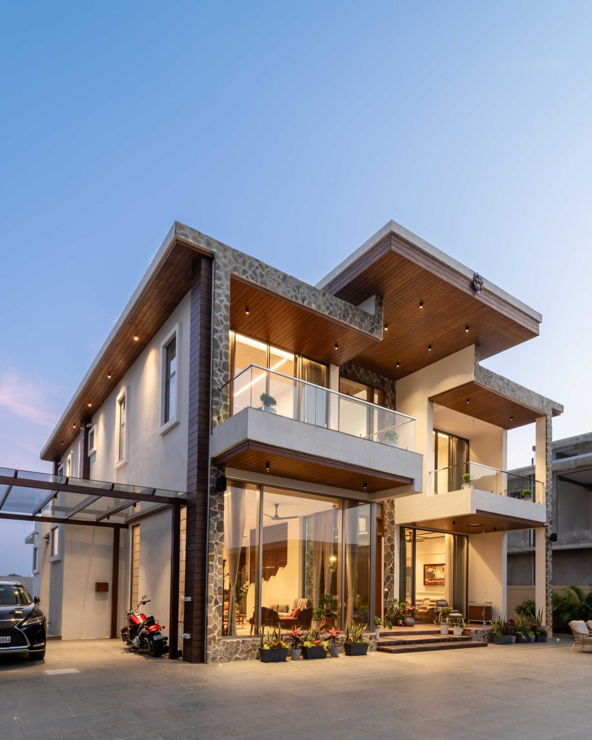 Dusk light exterior view of Anvaya Residence by Vistaar Associates
