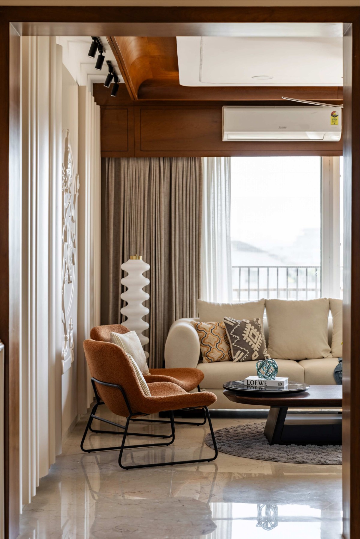 Designed for a young cancer specialist doctor based in Indore, this residence was envisioned as a sanctuary, an antidote to long, emotionally demanding workdays. The brief called for a warm, calming, and aspirational dream home that blends modern contemporary design with emotional depth and cultural grounding.