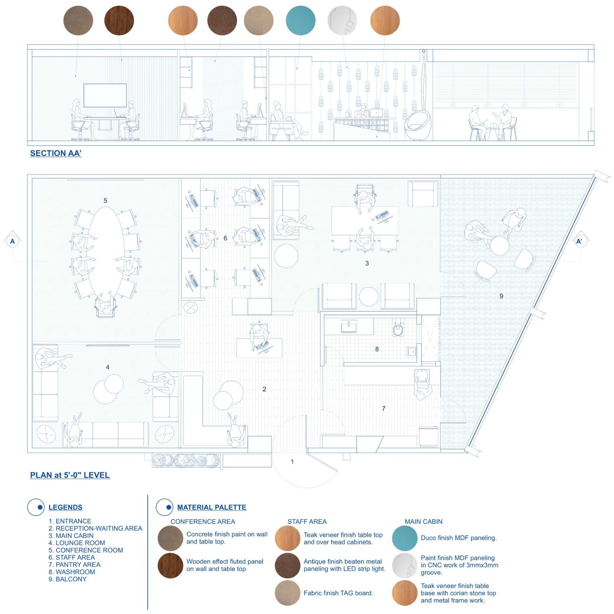Plan & Section of Ashapura China-clay Office by Studio Revah
