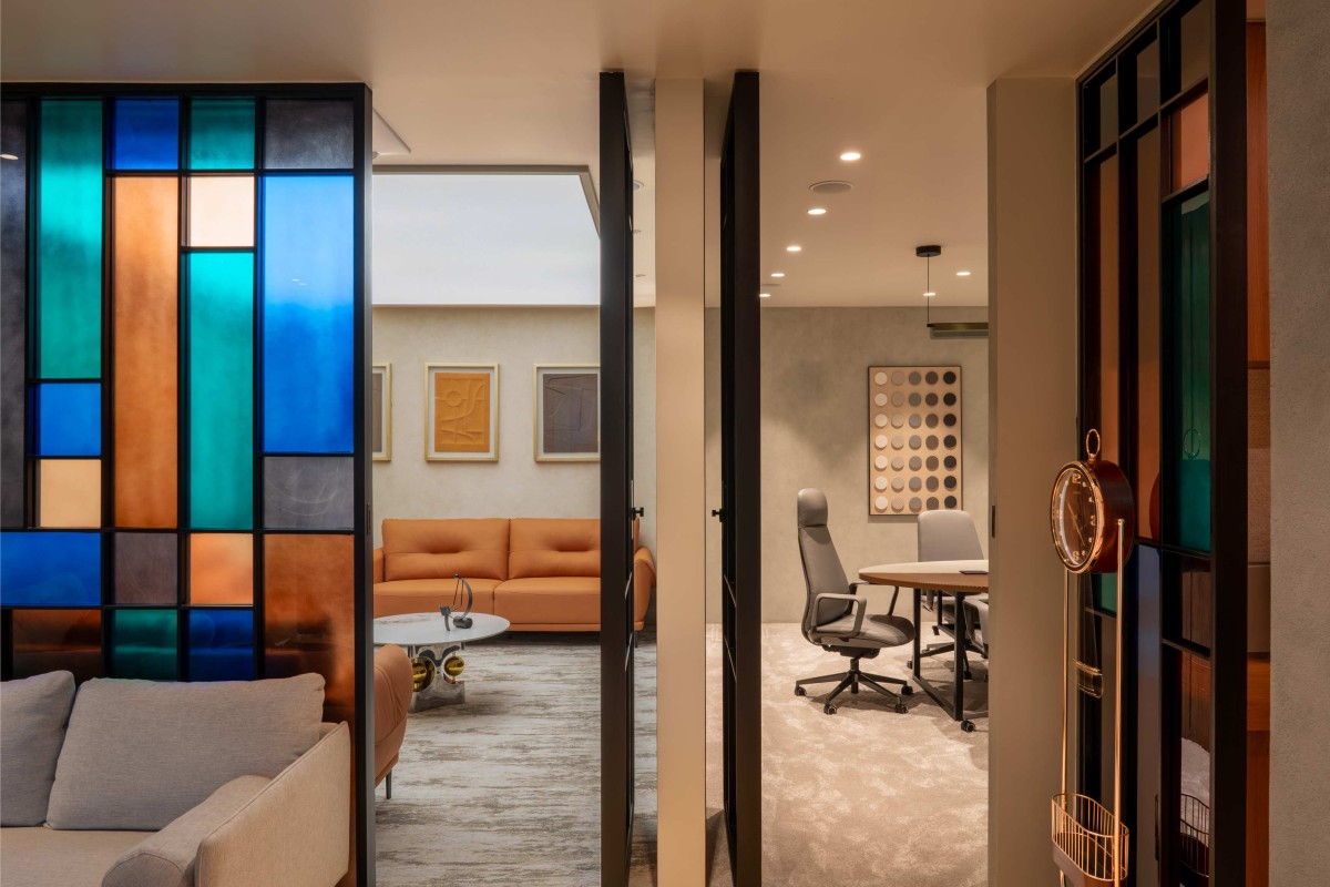 Reception to lounge area & conference area view of Ashapura China-clay Office by Studio Revah