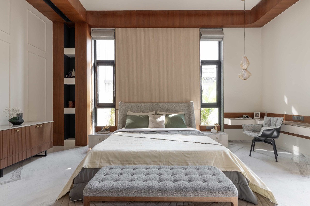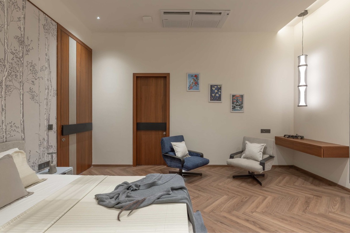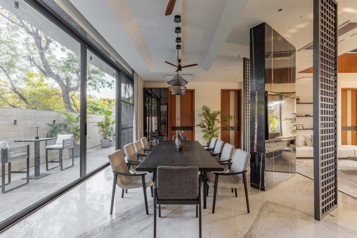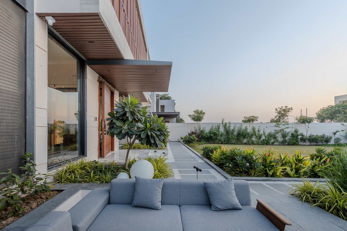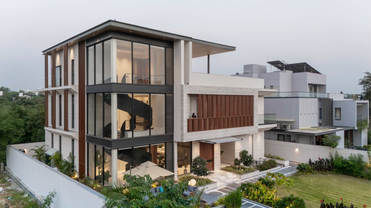 Designed as a contemporary family residence for Mr. Amit Gupta, this 8,000 sq. ft. home in Ahmedabad is conceived as a calm yet expressive architectural retreat, one that balances clarity of form with warmth of materiality. Developed through a collaborative design process, the residence reflects the client’s clear vision and involvement, resulting in a home that is sculptural in presence while remaining deeply connected to everyday living.