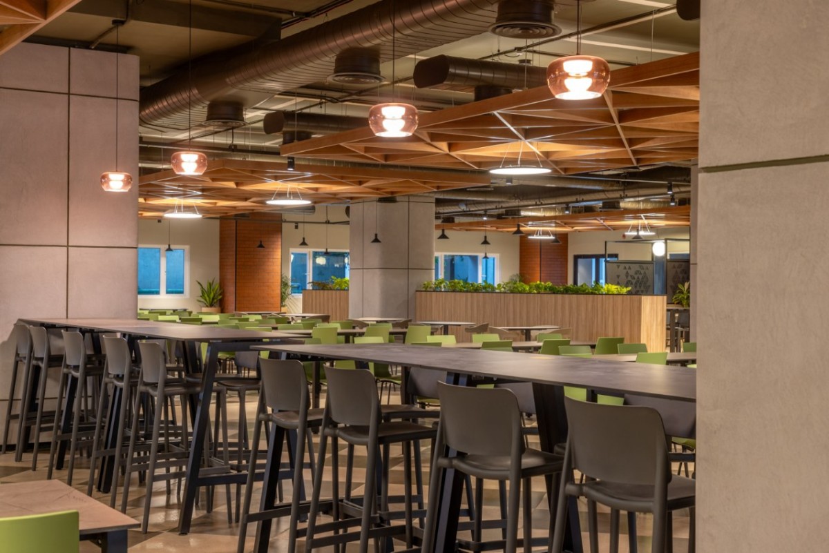 The client’s brief was clear: to create a cafeteria that could accommodate large volumes of people with efficiency, while ensuring it remained comfortable, lively, and inspiring. Functionality was a priority, but the space also had to embody the ethos of a contemporary workplace—supporting collaboration, rejuvenation, and informal networking. Our approach was to treat the cafeteria as a social common, balancing robustness with warmth, and operational efficiency with an elevated user experience.