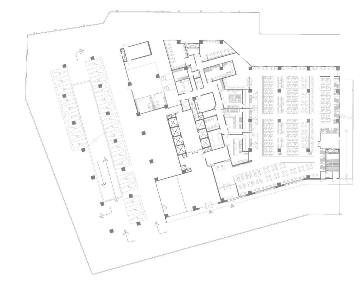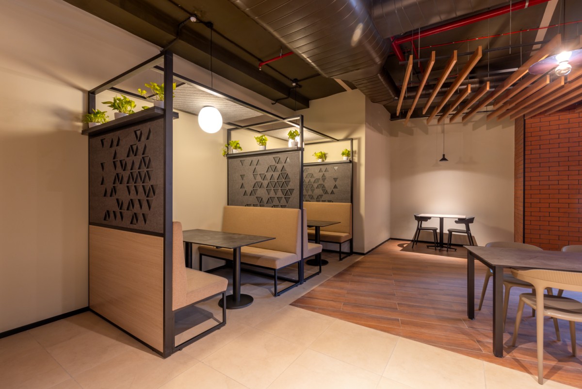 Spatial configuration emphasized fluidity and inclusivity. Community tables encouraged team interactions, intimate café clusters supported small groups, while linear counters catered to individuals. Circulation paths were designed for clarity, ensuring smooth flow during peak hours, while planting and partitions softened the edges, creating zones of comfort within the whole.