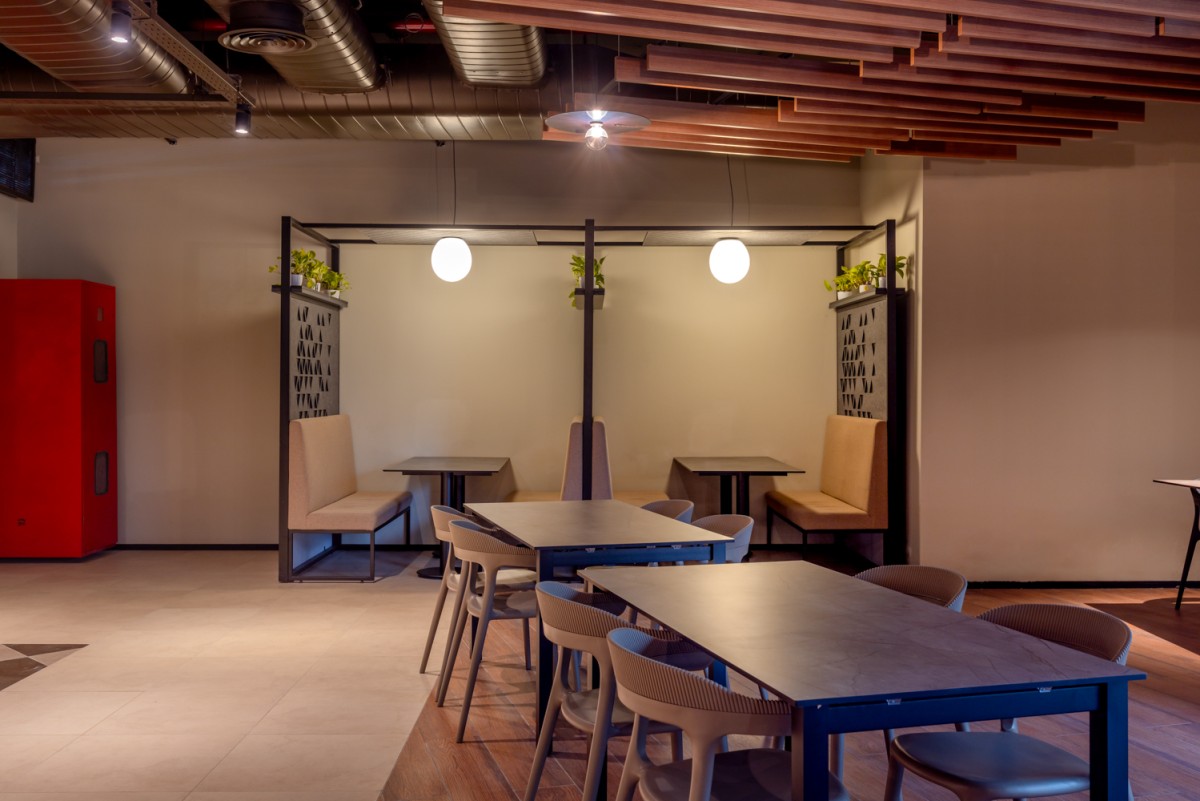 The challenges lay in reconciling high-capacity dining requirements with the need for warmth and intimacy. Large open spaces risk becoming sterile; hence, we employed zoning strategies, varied seating typologies, and greenery to create human-scaled, inviting corners without obstructing circulation.