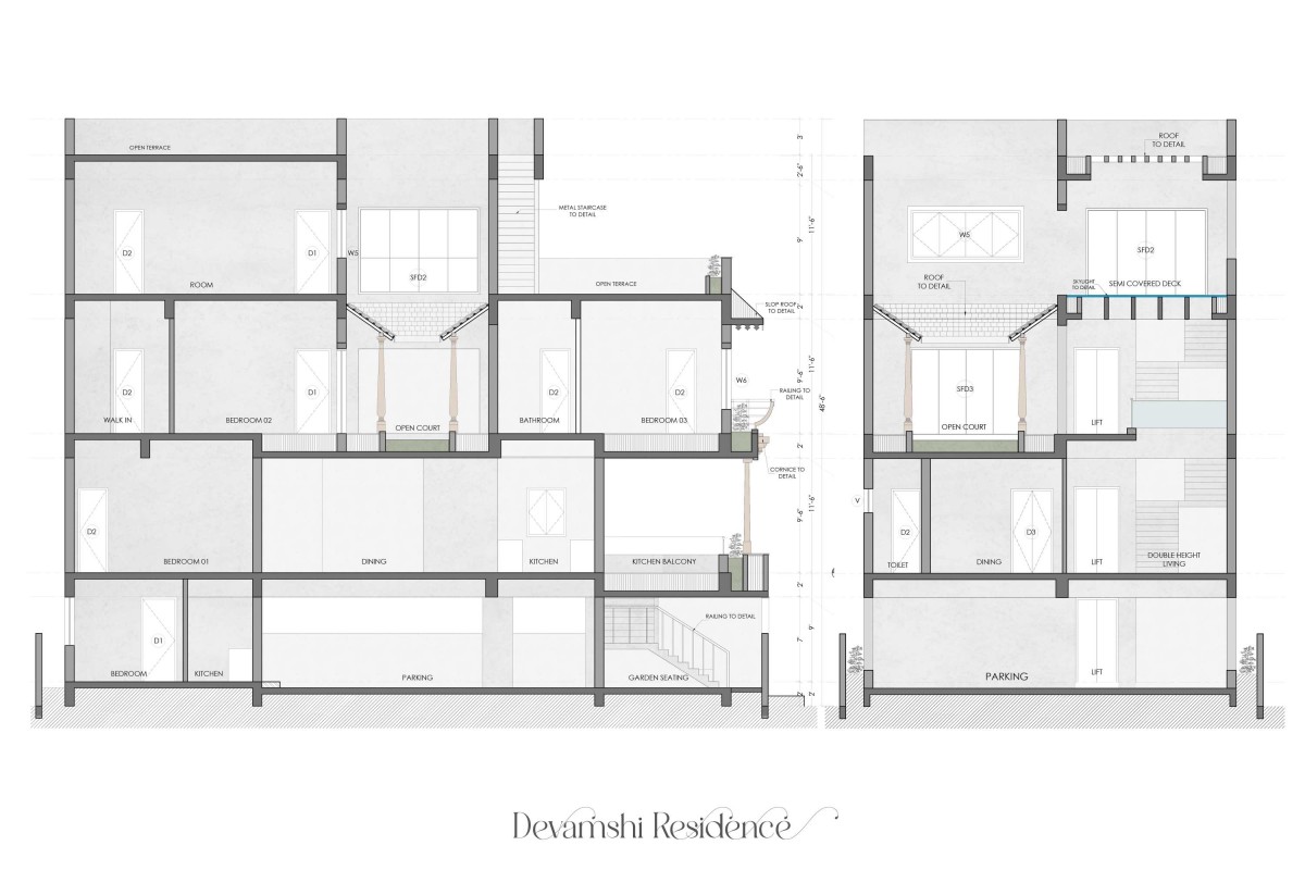 Sections of Devamshi Residence by Redwall Design Studio