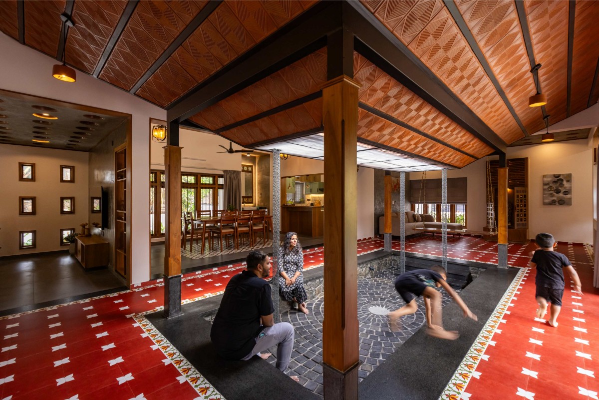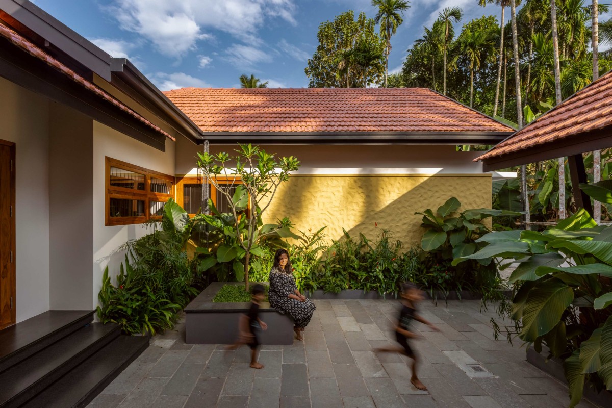 Large openings and cross-ventilation strategies ensure the house remains airy and cool throughout the year—a nod to Kerala’s humid climate. Filtered natural light gently illuminates the interiors, creating a bright and comfortable atmosphere without relying heavily on artificial sources.