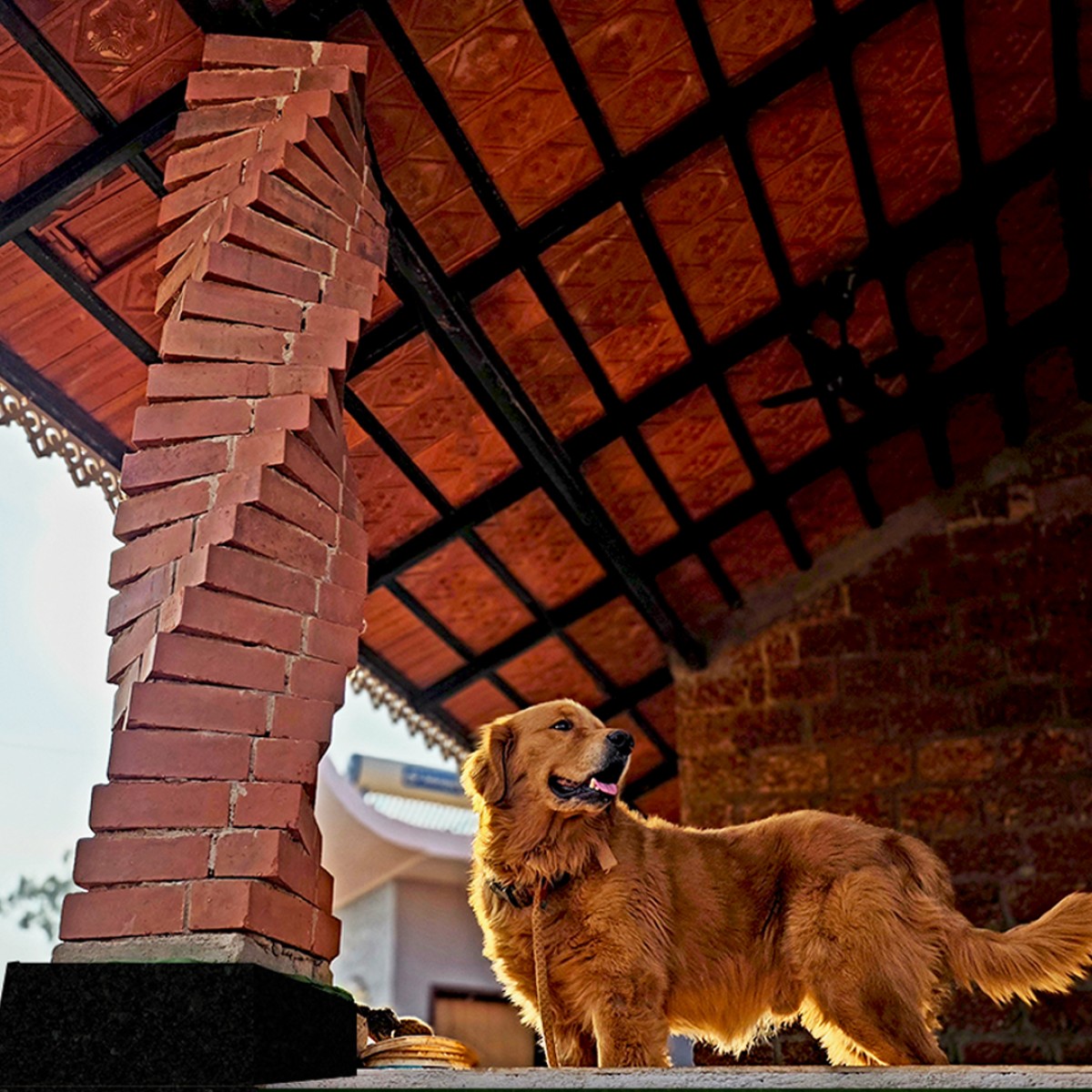 Detailed shot of twisted column of Ethika Farmhouse by Architect Utkarsh Acharya & Associates