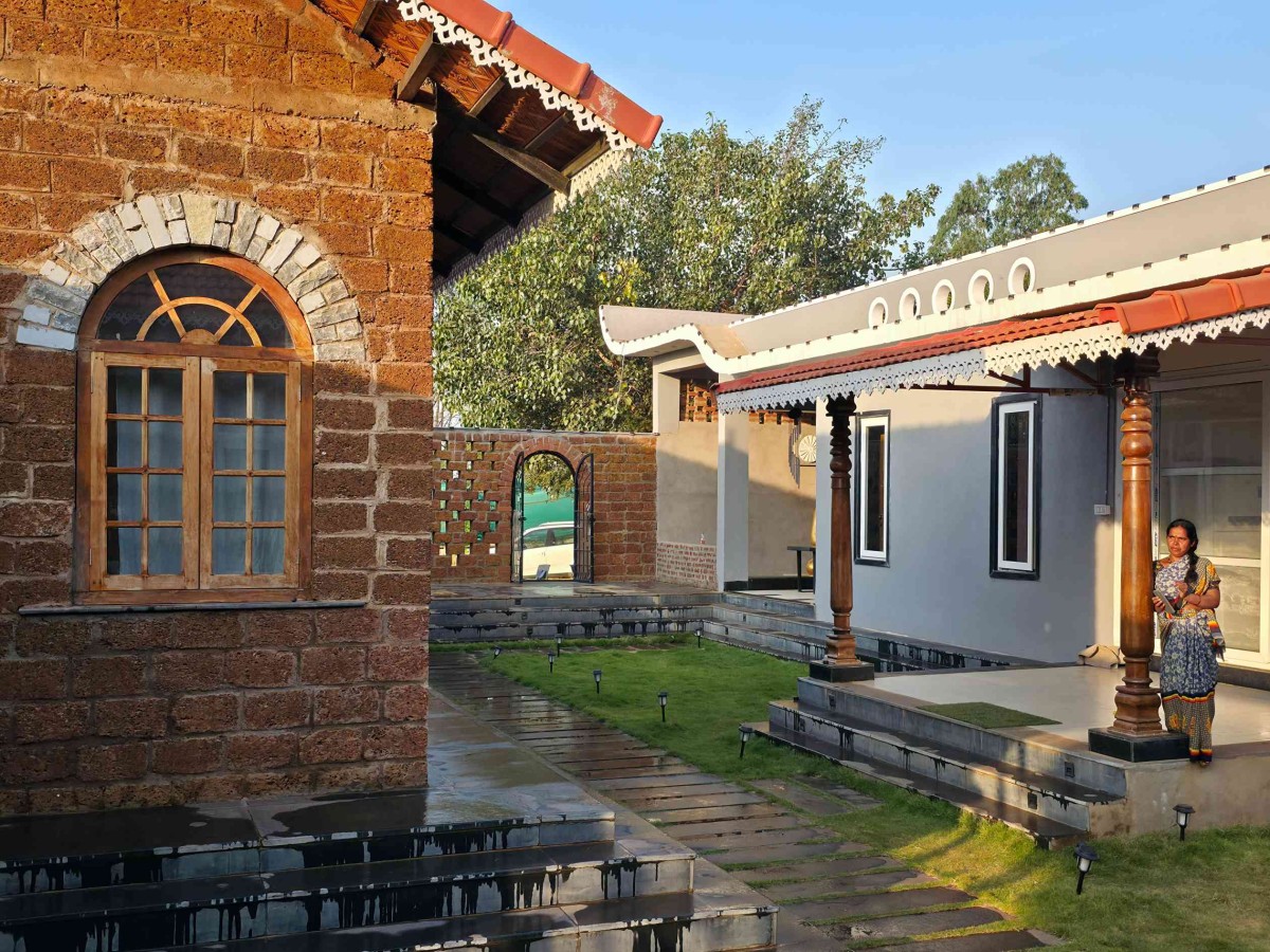 Exterior view of Ethika Farmhouse by Architect Utkarsh Acharya & Associates