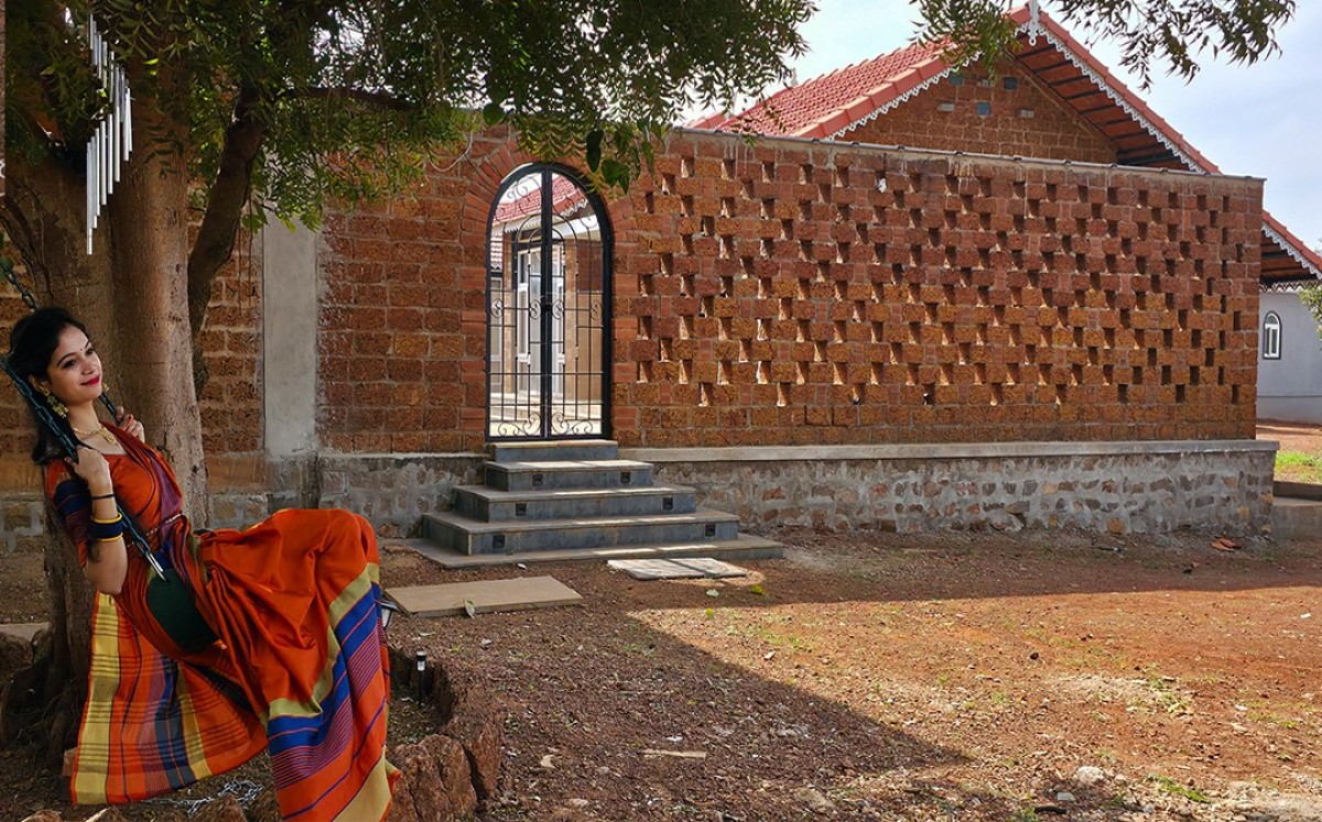 Materiality was guided by a clear and conscious principle: to build with what the land provides. The palette draws from locally available resources, employing laterite stone, black stone, and Tandur stone for foundations, walls, and structural arches, thereby grounding the architecture in its regional context. Roof structures are composed of Mangalore tiles and seasoned timber, reinforcing traditional construction practices. Structural systems such as filler slabs, jack-arch roofs, and shallow domes were integrated to reduce concrete consumption by up to 40 percent, enhancing both environmental performance and structural efficiency. Bamboo reinforcement was introduced wherever feasible, while recycled glass bottles were innovatively repurposed as ventilation and skylight elements. Together, this material strategy not only lowers the project’s carbon footprint but also fosters a tactile and enduring connection to local building traditions.