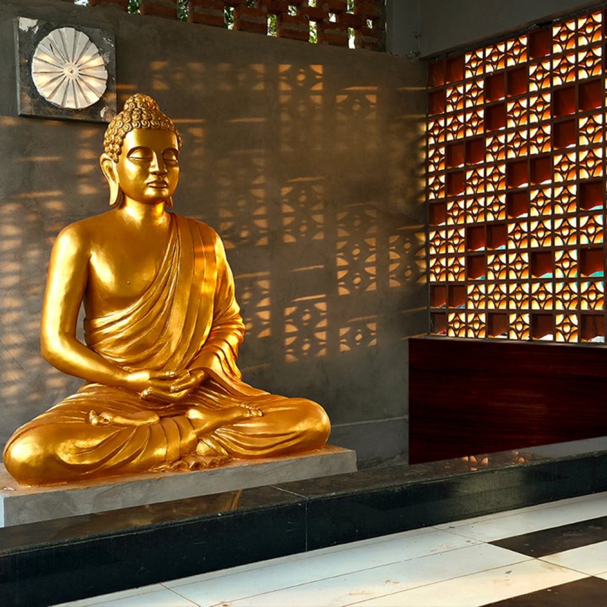 Lord Buddha Statue at foyer of Ethika Farmhouse by Architect Utkarsh Acharya & Associates