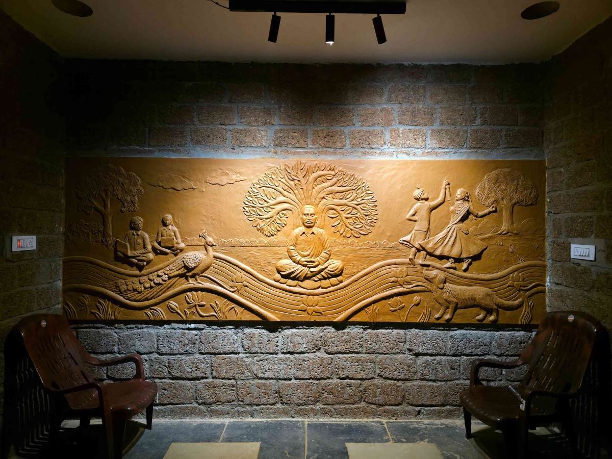 Detailed shot of wall art of Ethika Farmhouse by Architect Utkarsh Acharya & Associates