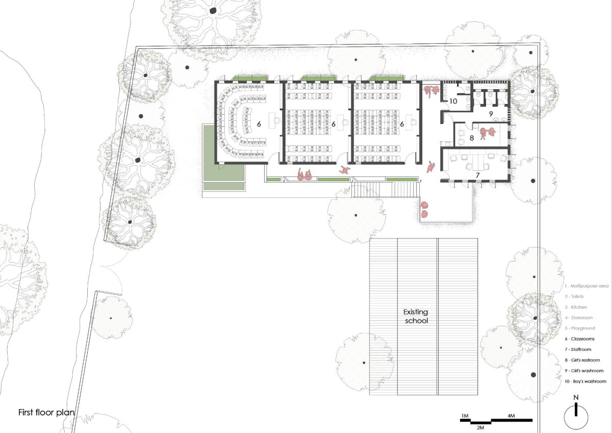 First Floor Plan of Flood Affected School at Kelthan Village by unTAG Architecture and Interiors