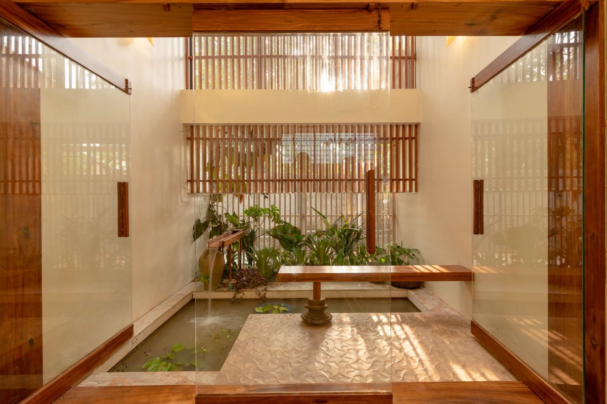 Courtyard with Waterbody of Folded Canopy House by NO Architects Designers and Social Artists