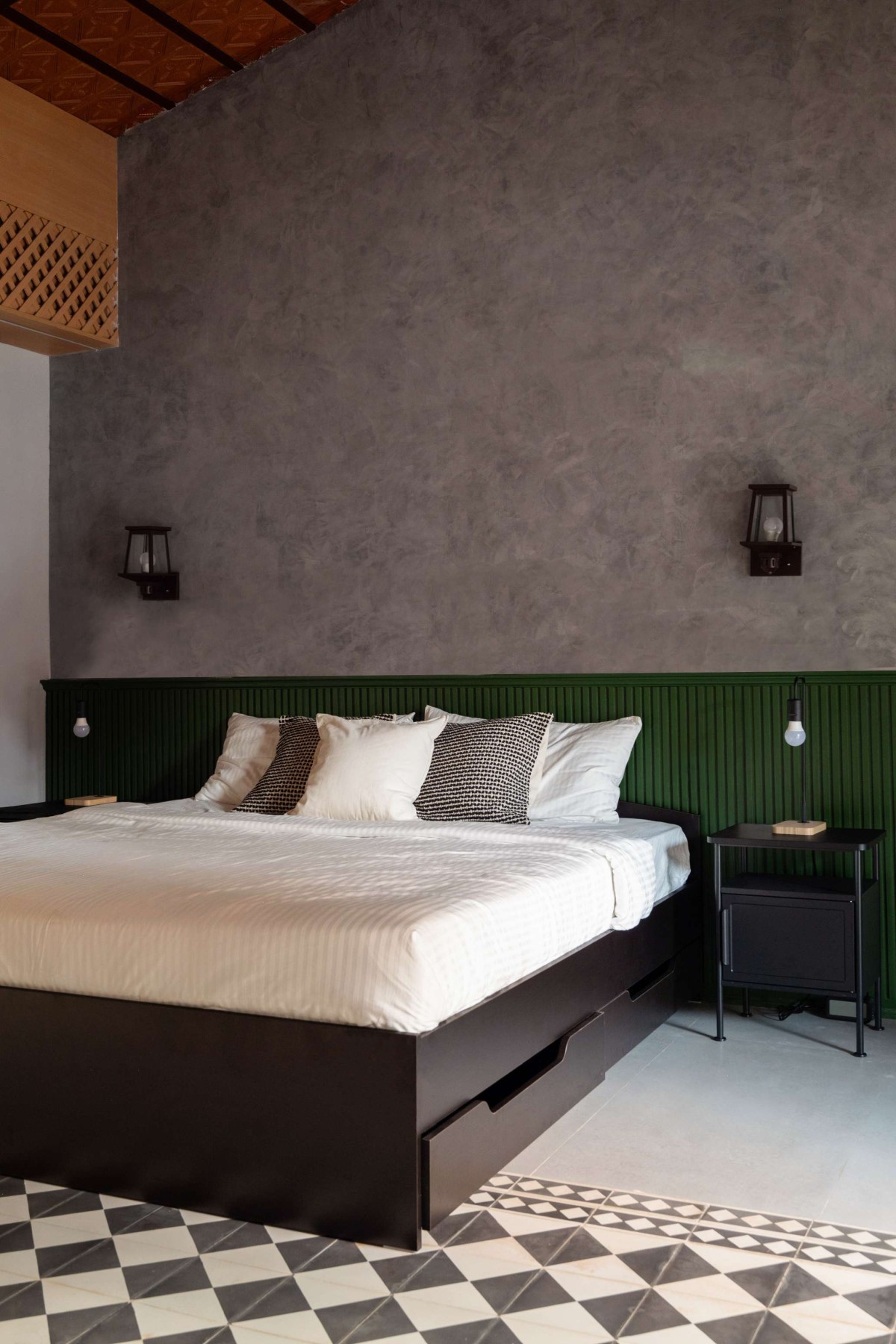 Rejecting the polish of a conventional modern hotel, the interiors embrace warmth and imperfection. Natural wood finishes, tactile fabrics, handmade tiles, and deliberate pops of colour introduce a lived-in charm. These subtle irregularities soften the space, lending it character and authenticity—qualities that transform Gramam Living from a place of stay into an experience of belonging.