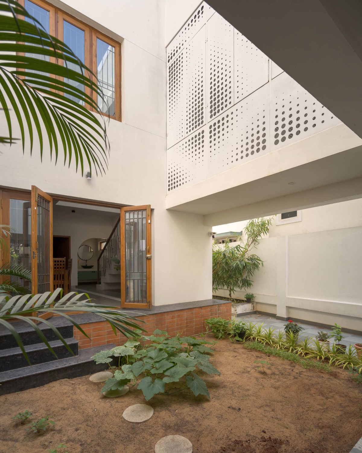View from the main door showing the entrance Court of Harmony House by D.L.E.A
