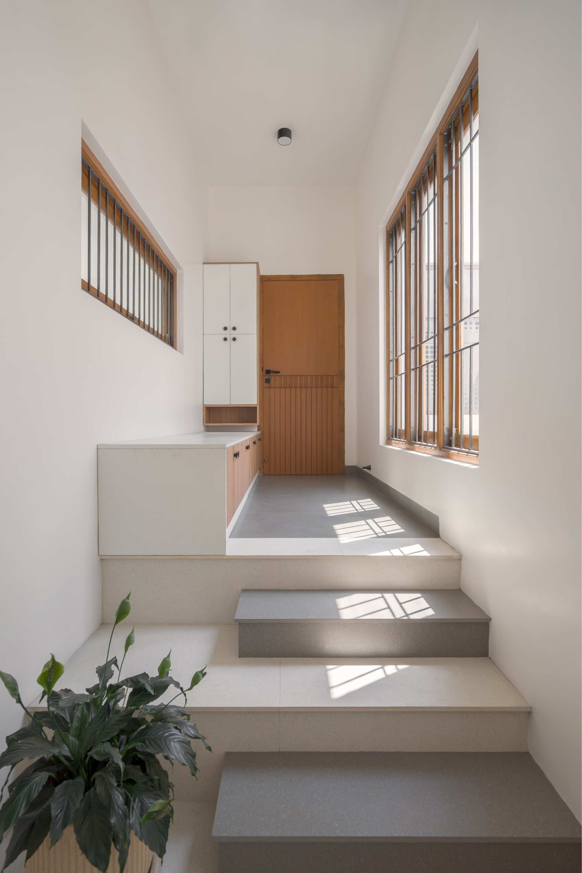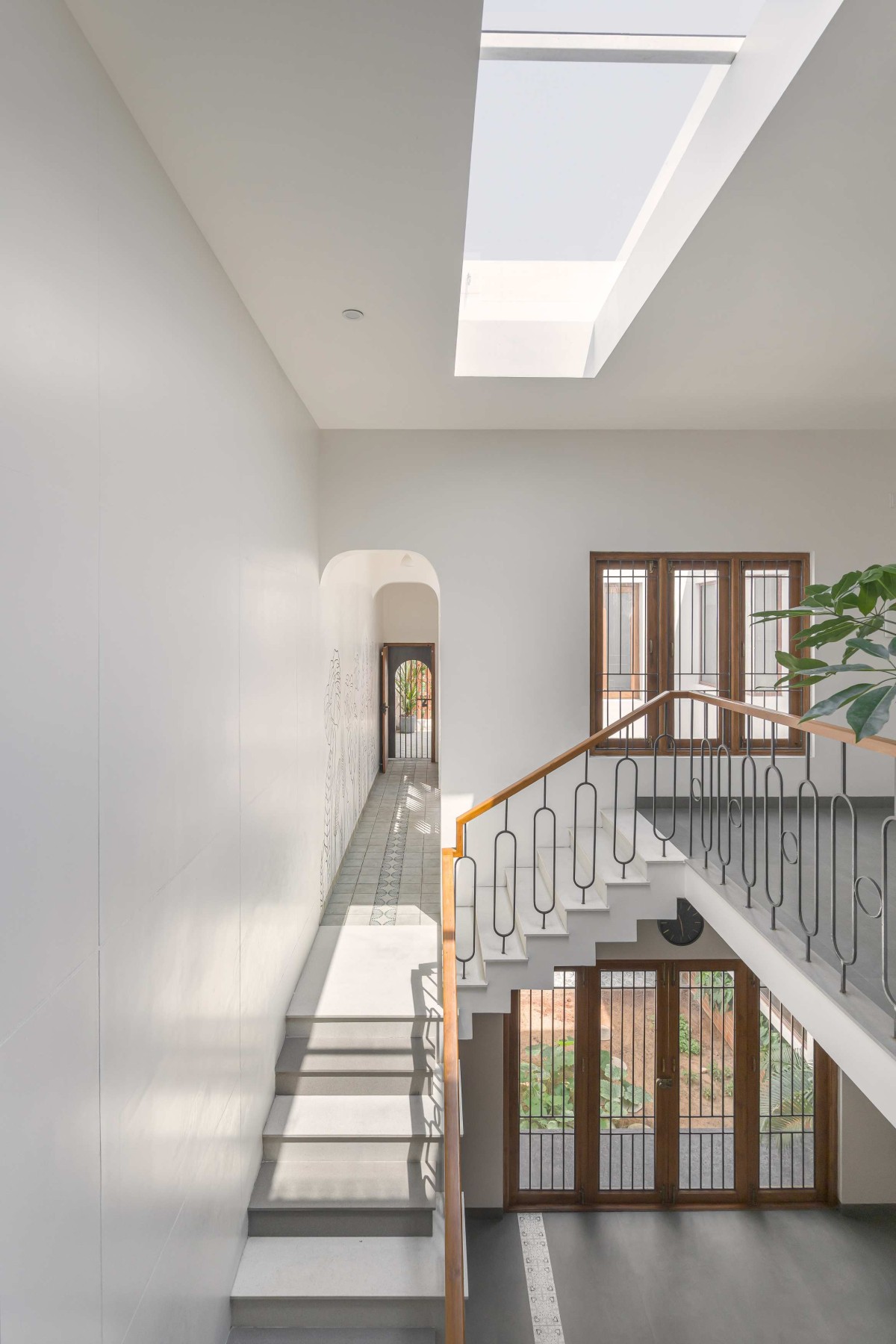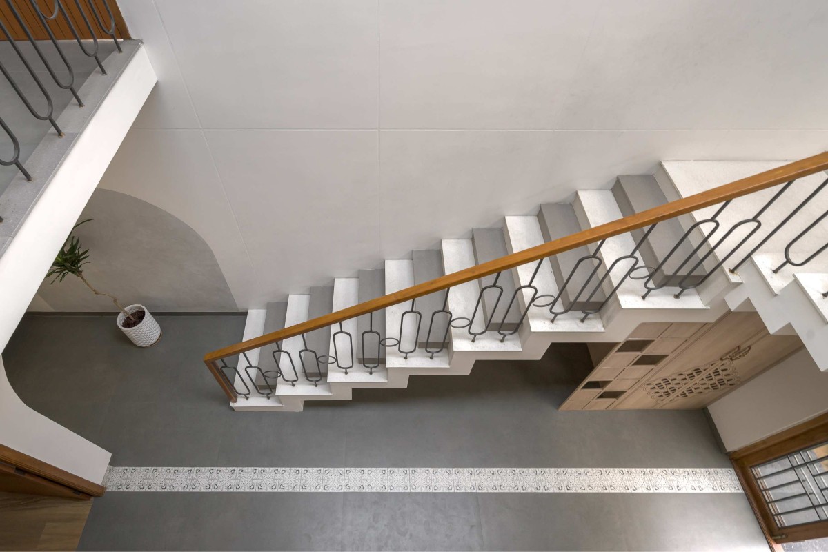 View of the staircase from informal living of Harmony House by D.L.E.A