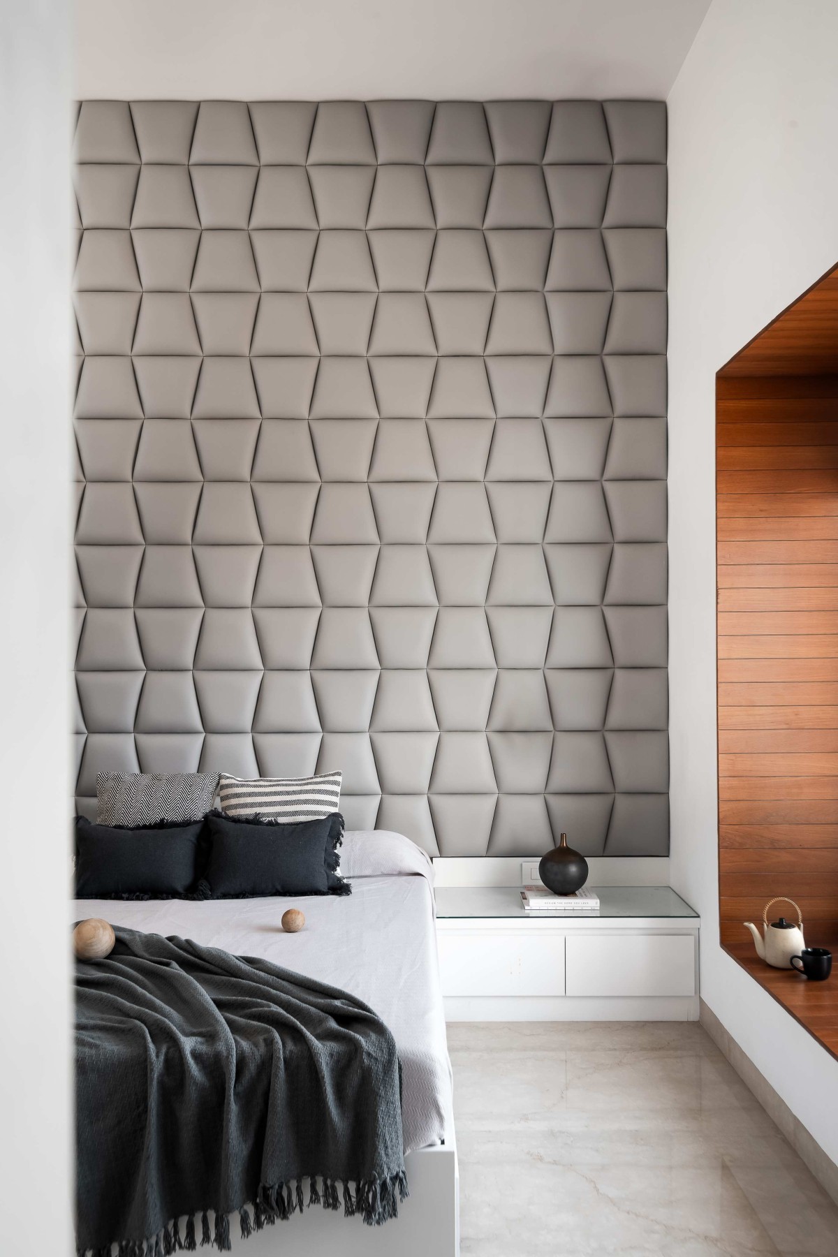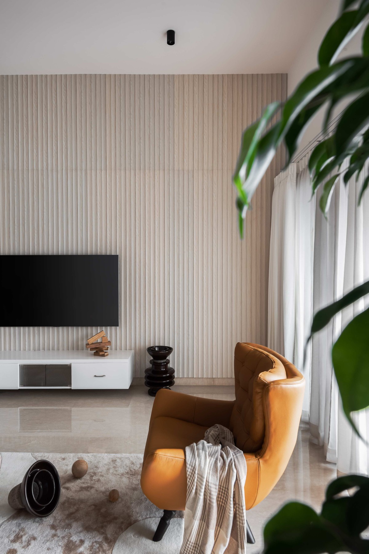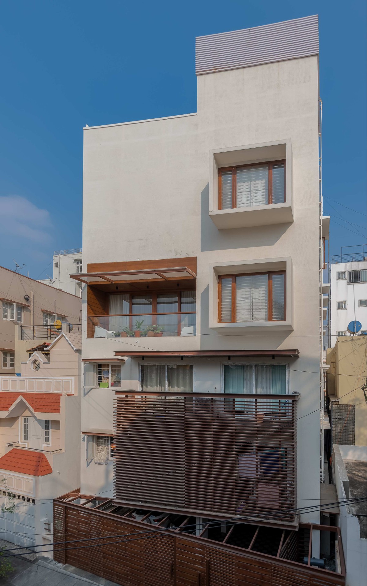 Fluted wooden cladding of Hemadri by Design Kacheri