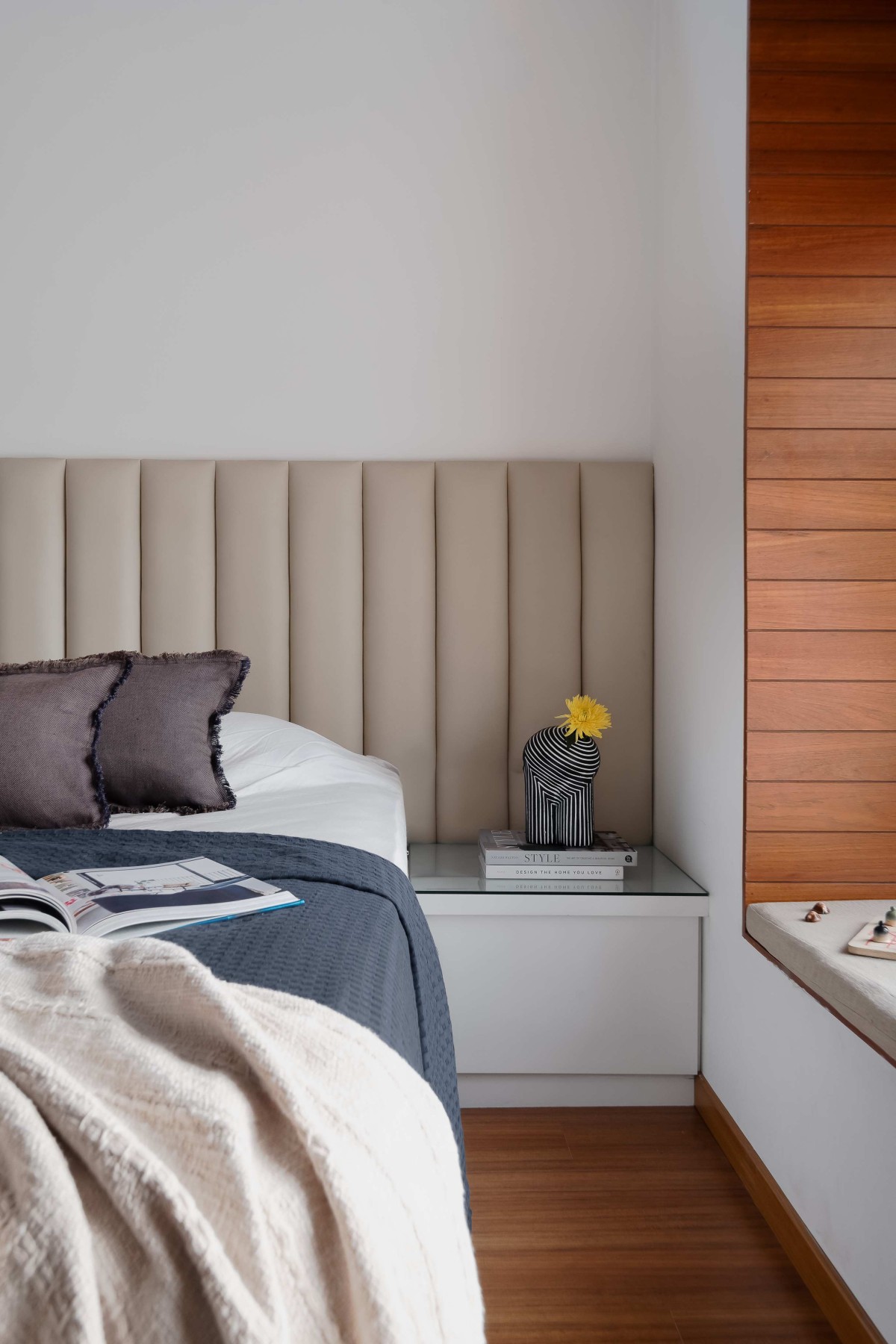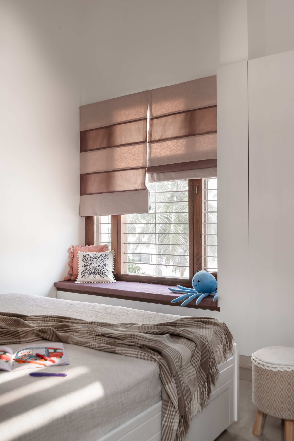Bedroom with bay window seat of Hemadri by Design Kacheri
