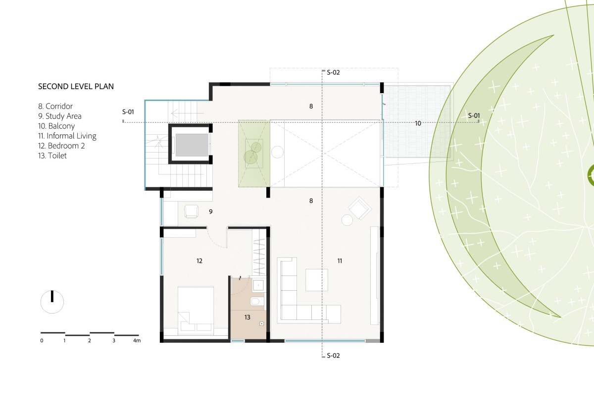 Second Floor Plan of House Above The Tree by Collage Architecture Studio