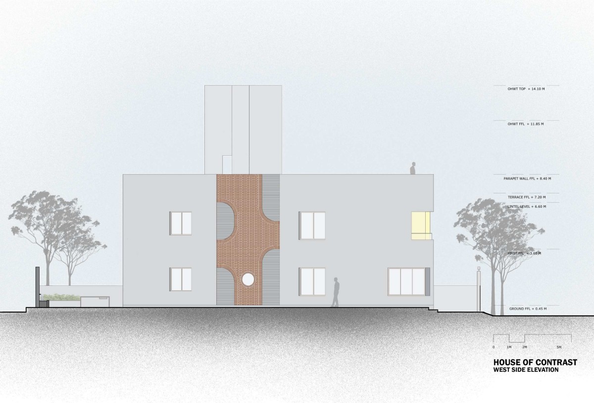 West Side Elevation of House of Contrast by Alok Kothari Architects