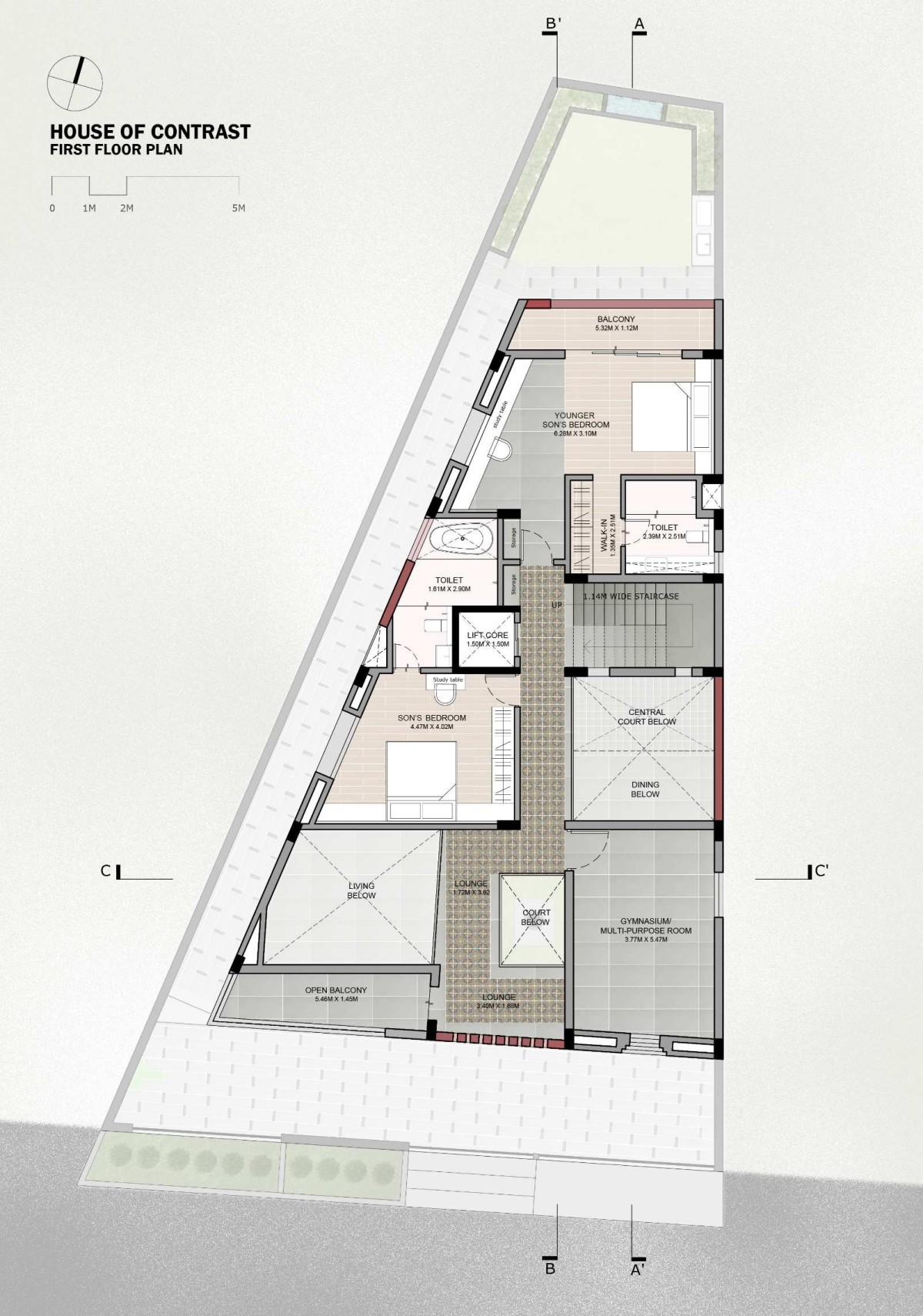 First Floor Plan of House of Contrast by Alok Kothari Architects