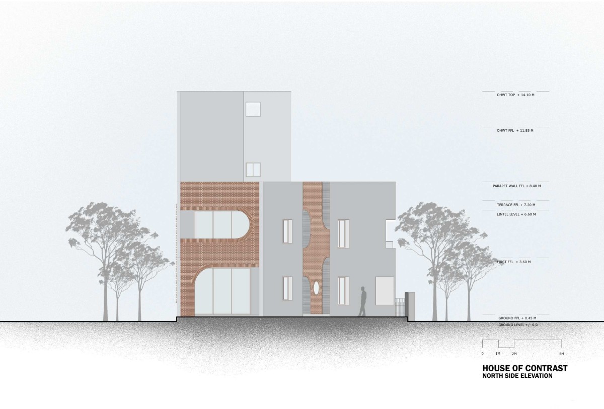 North Side Elevation of House of Contrast by Alok Kothari Architects