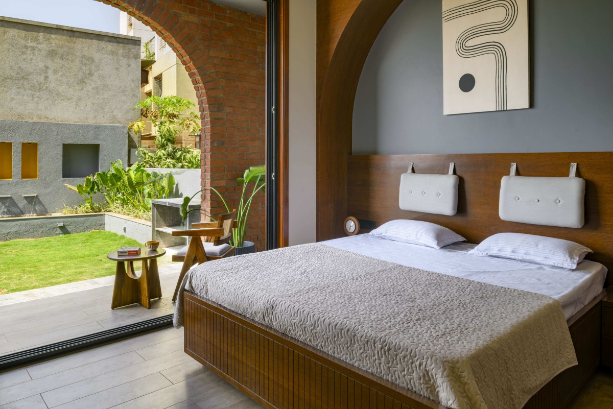 Master Bedroom with Verandah of House of Contrast by Alok Kothari Architects