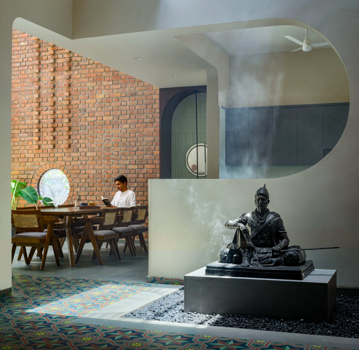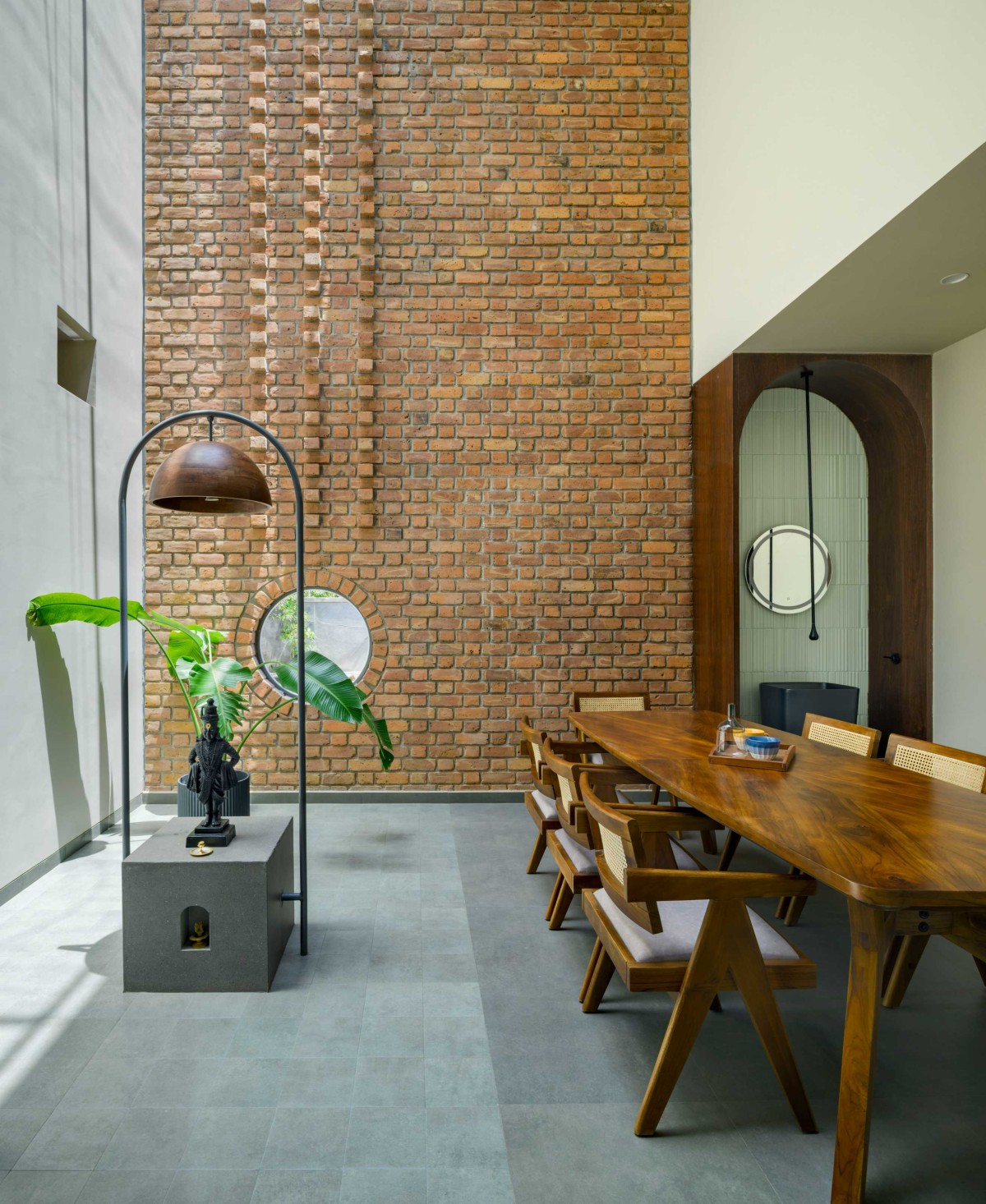 Dining, Devghar & Central Court of House of Contrast by Alok Kothari Architects