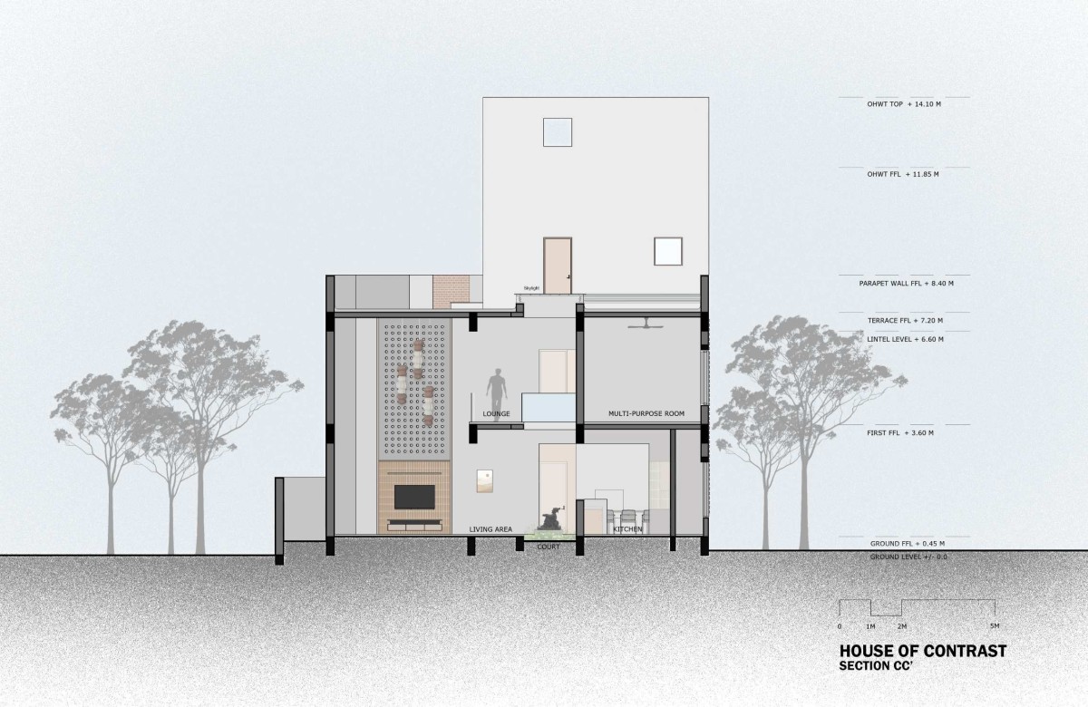 The 'House of Contrast' is a space where contrasting elements exist simultaneously, while still maintaining the functionality & aesthetics of design. Sometimes engaging boldly and sometimes conversing subtly, these contrasting features generate curiosity & help trigger one's emotions.