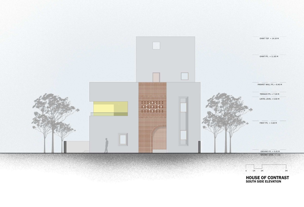 South Side (Front) Elevation of House of Contrast by Alok Kothari Architects