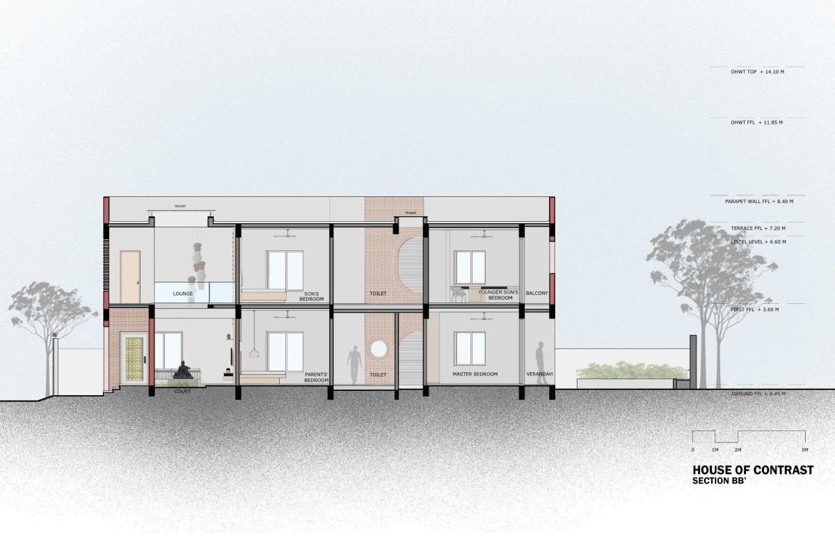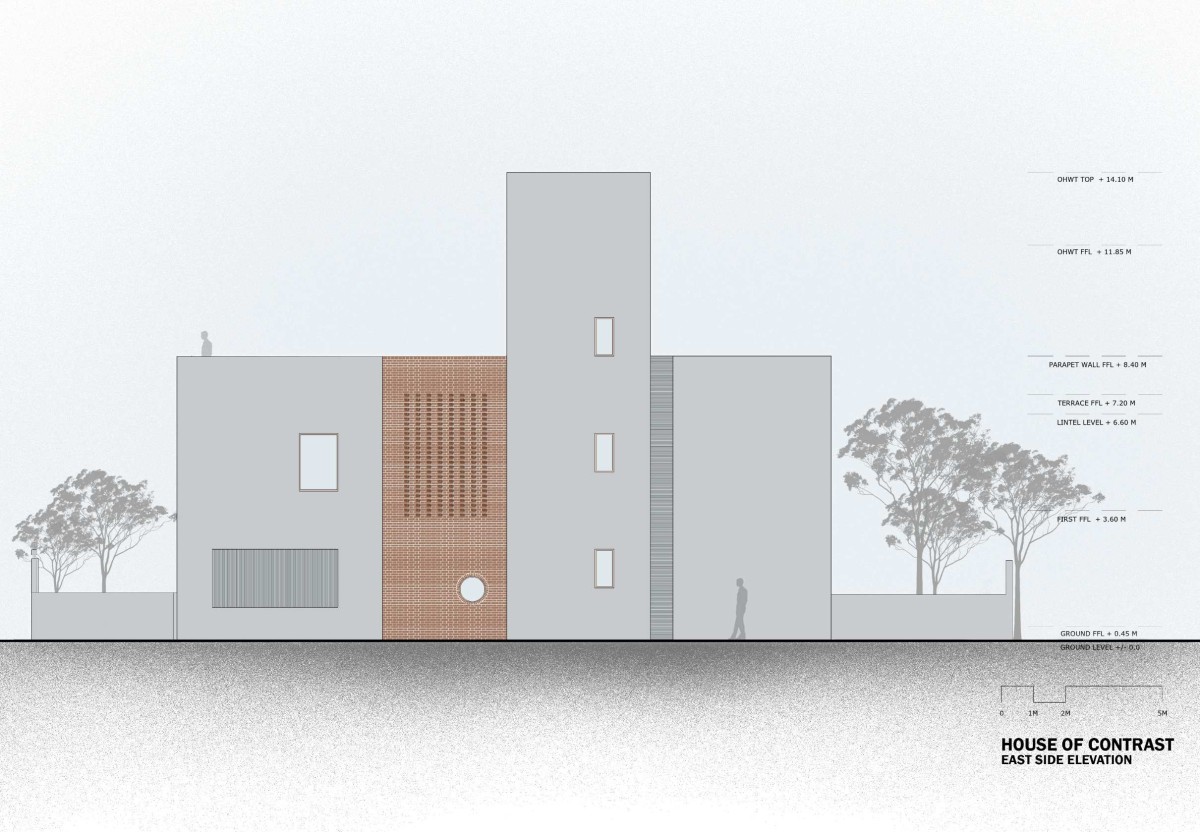 East Side Elevation of House of Contrast by Alok Kothari Architects