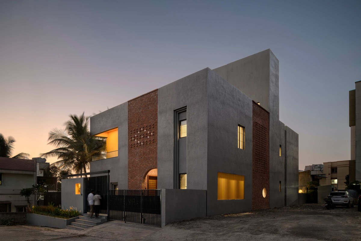 South-East Side Twilight View of House of Contrast by Alok Kothari Architects