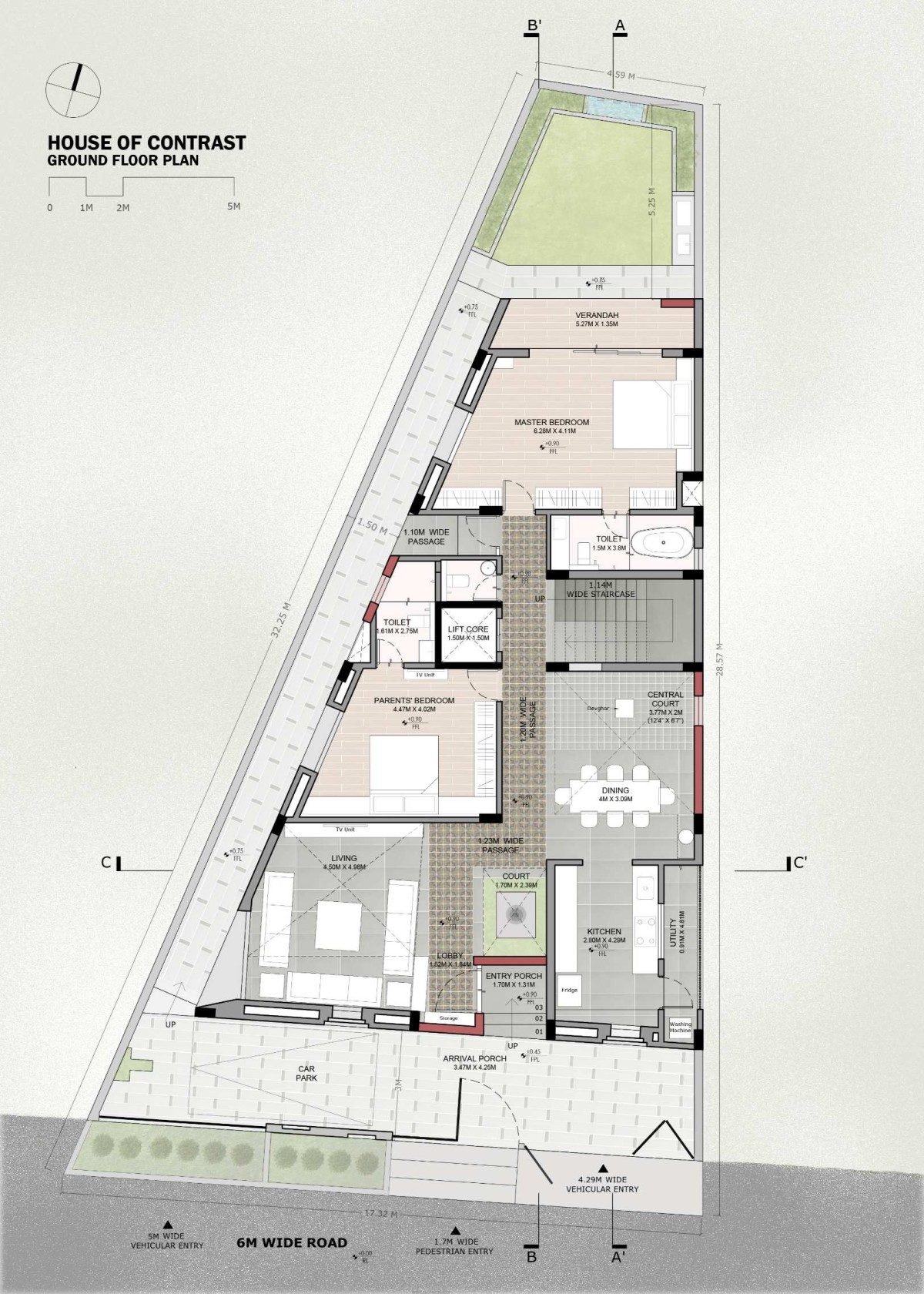 Ground Floor Plan of House of Contrast by Alok Kothari Architects