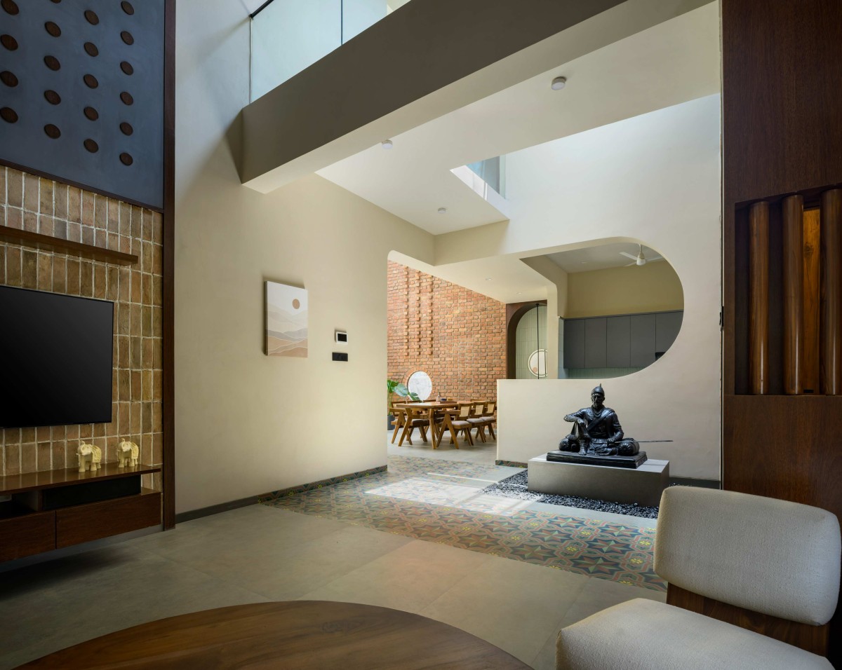 Central Court & Devghar of House of Contrast by Alok Kothari Architects