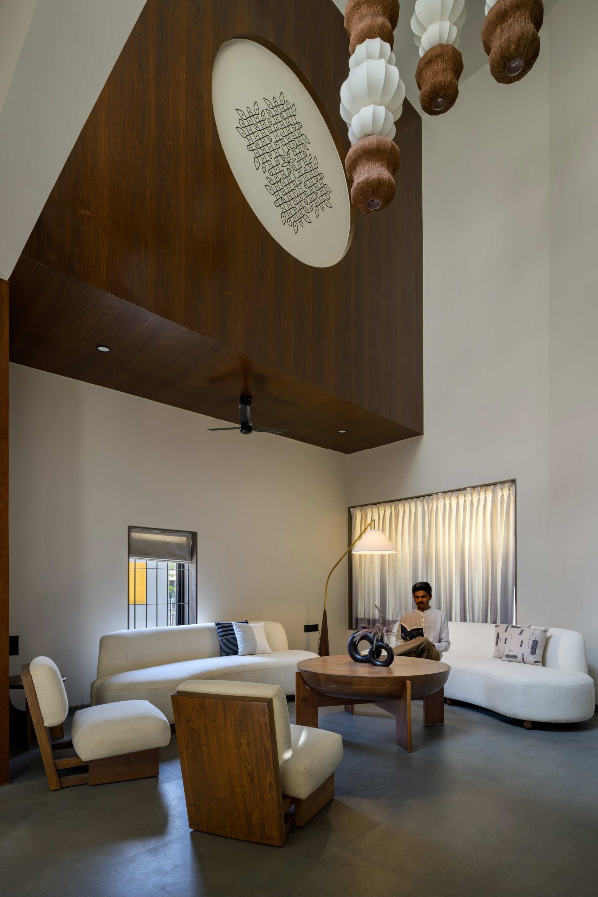 Double Height Living Area of House of Contrast by Alok Kothari Architects