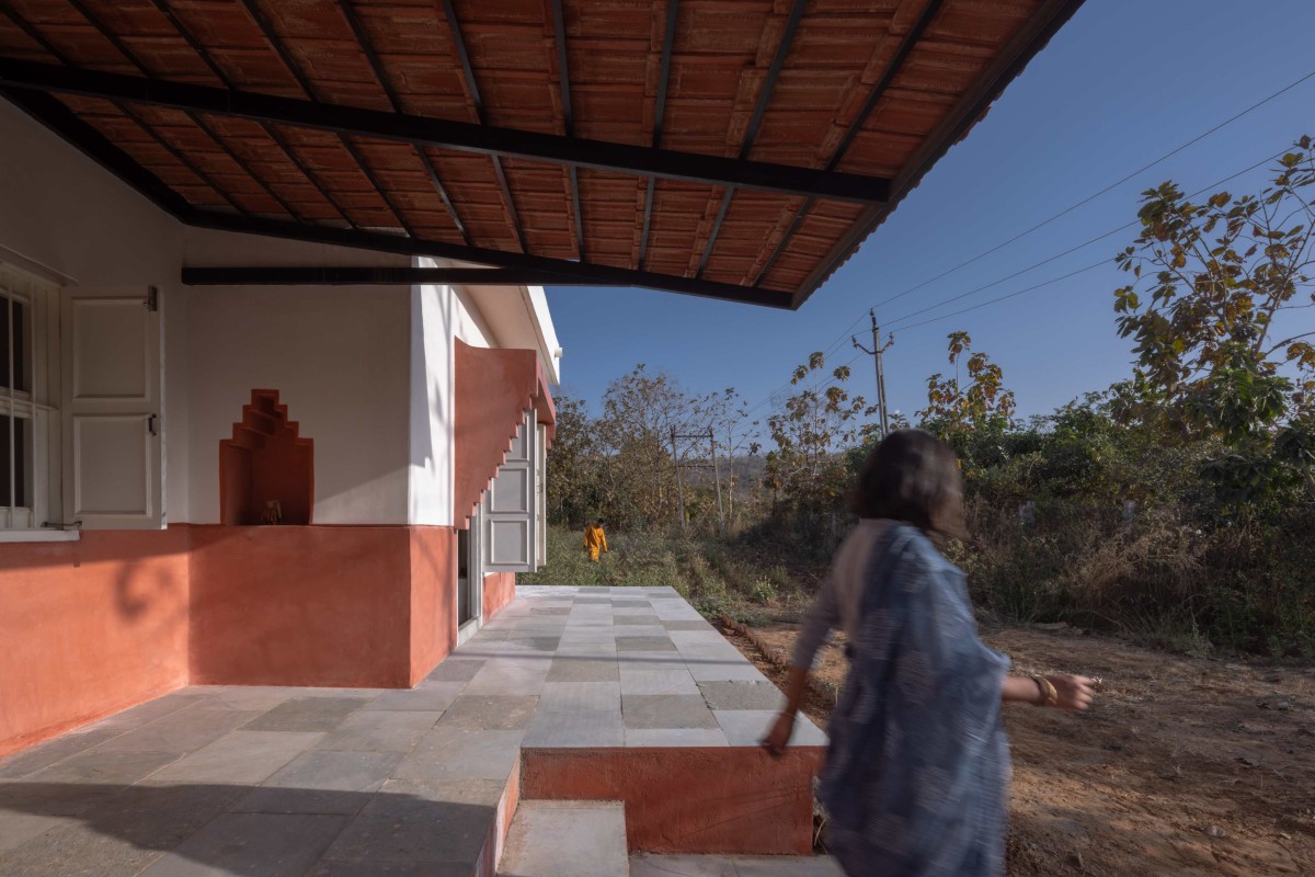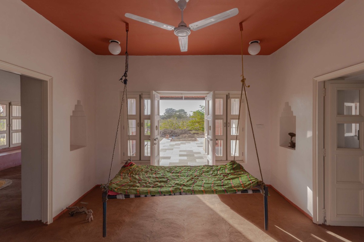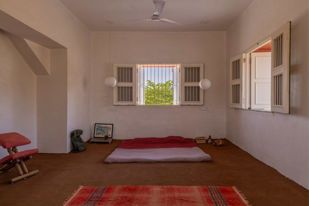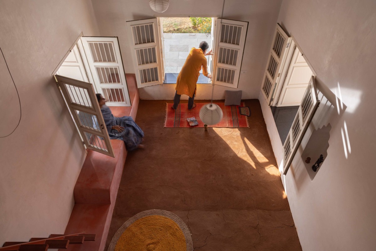 Its architectural language—thick walls, built-in niches, verandahs,—derives from rural logic, regulating heat, organizing space, and fostering social life. The plinth becomes a semi-public edge; the mezzanine, a playful perch; and the semi-open connectors, spaces for pause. Passive cooling is embedded in form, not applied as an afterthought.