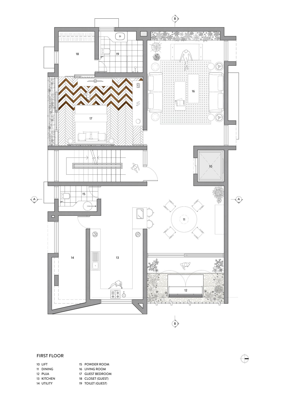 Terrace Floor Plan of House of Quite Llight by Yellow Door Architects