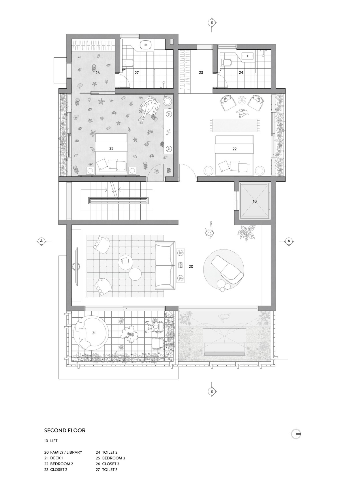 Second Floor Plan of House of Quite Llight by Yellow Door Architects