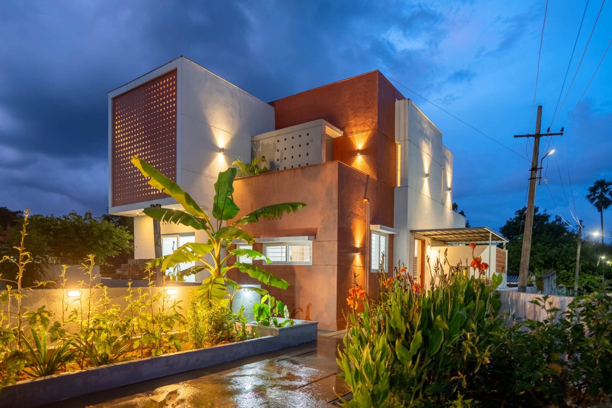 Dusk light exterior view of Humble Residence by Configoo Spaces