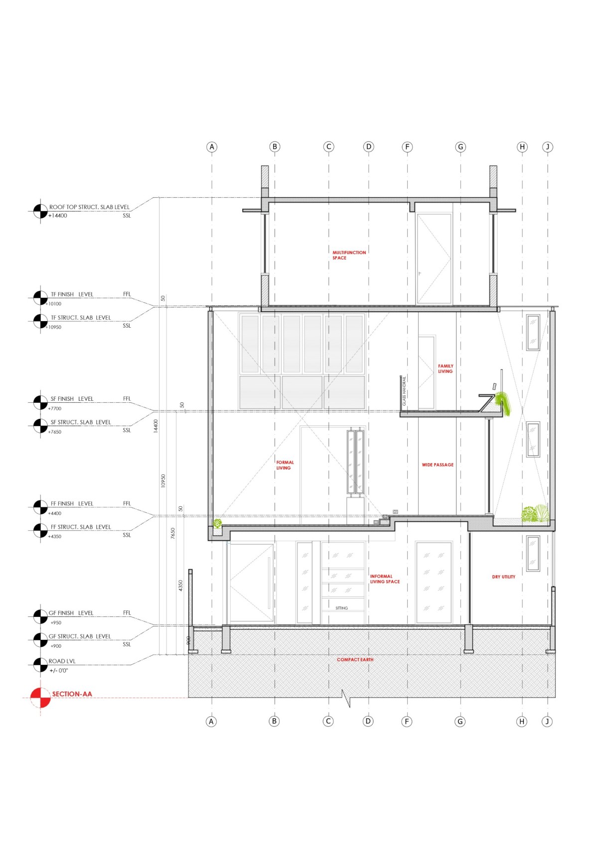 Section AA of Isha_Srinidhi Nilaya by a+me Architects